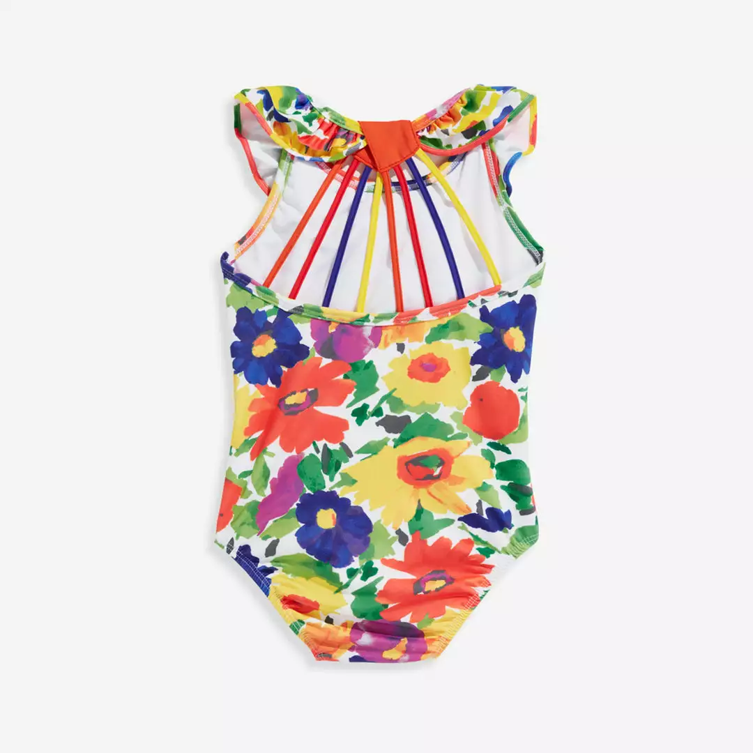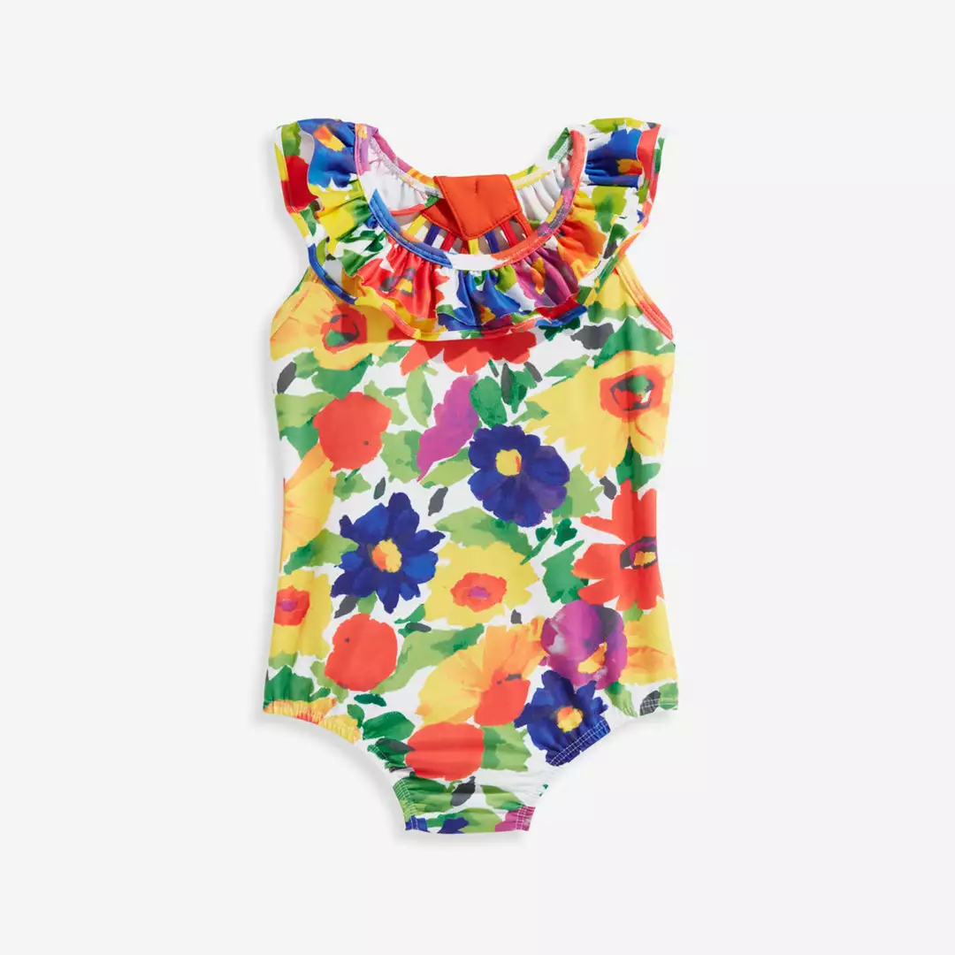 Features UPF 50+ sun protection to keep them safe from the sun’s harmful rays. Lycra blend. Sizes 4-12y. Please note, some sunscreens may cause discoloration.
