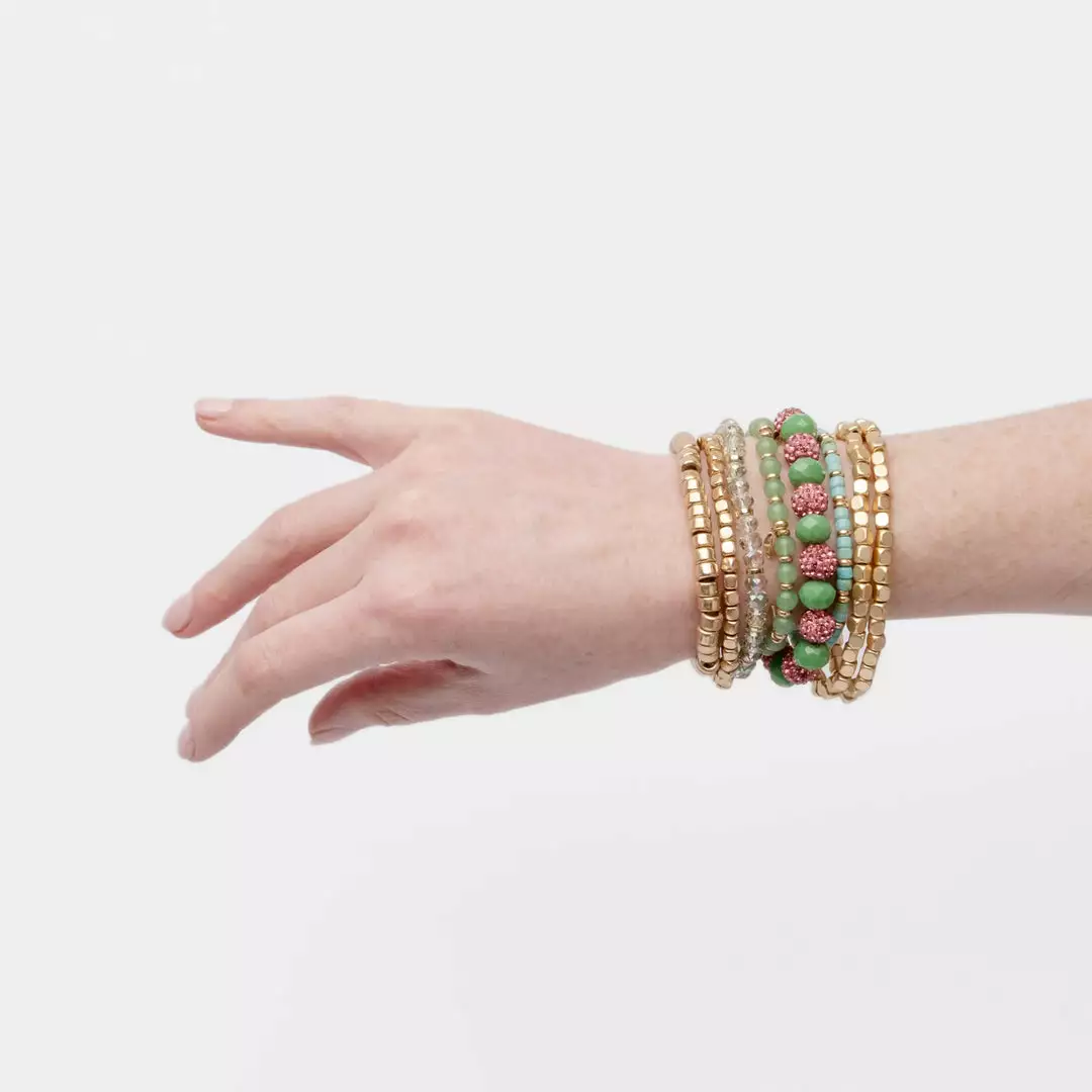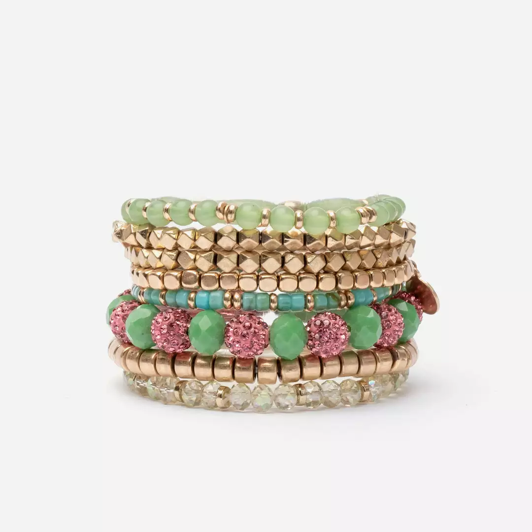 Our new Harbor Island Stacked Bracelet features green and pink beads – mix and match or wear them all together!