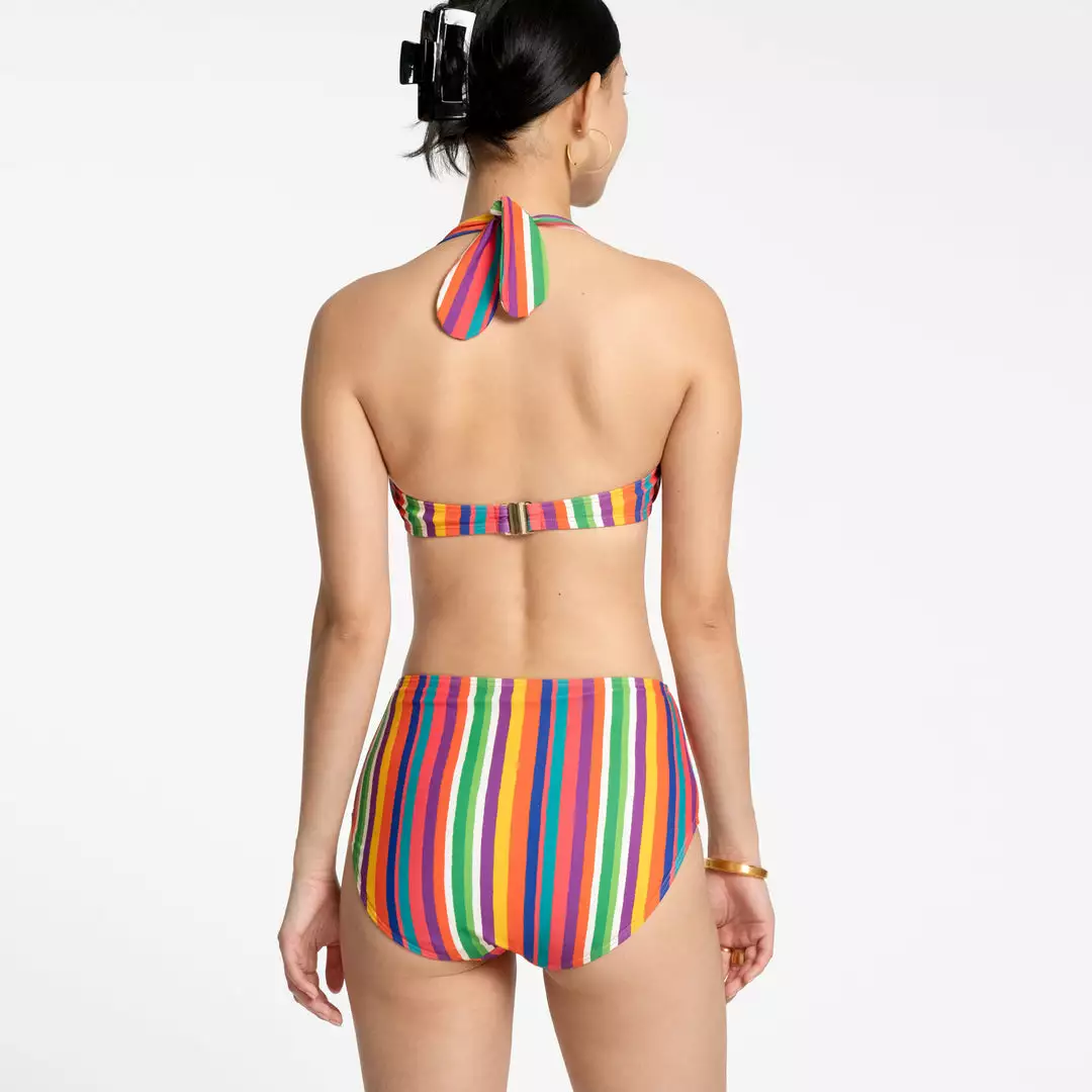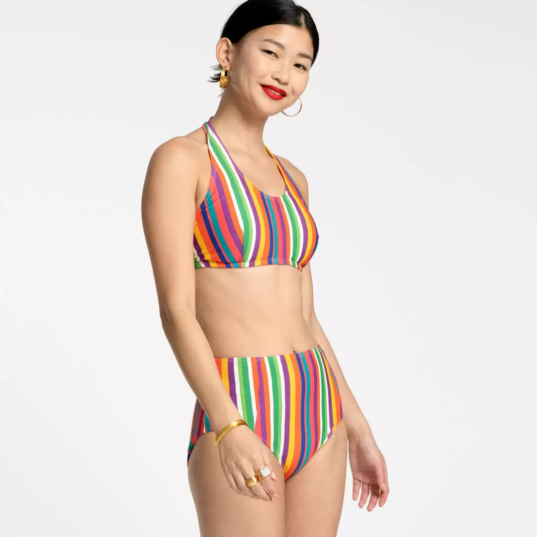 Our brand new swimsuit collection includes the Addy Two Piece. The Abby features a halter top (with built in bra support) and high waisted bottom.