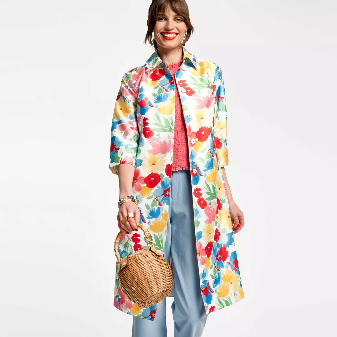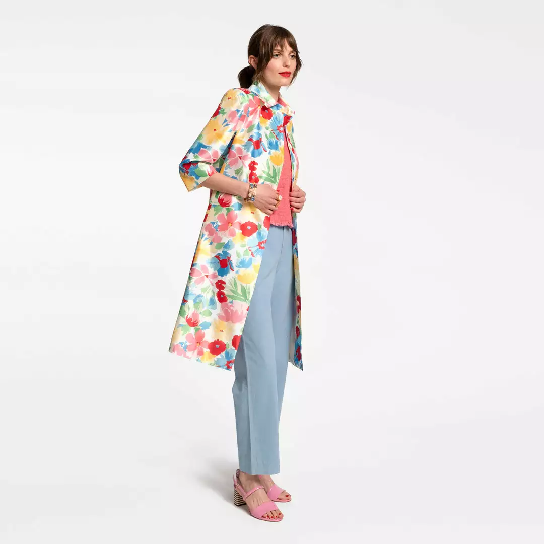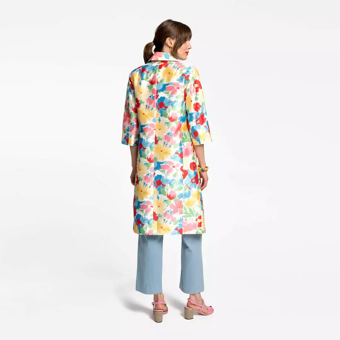 Our Hibiscus Balmacaan in striking floral print is stylish and lightweight, perfect to wear as an all day statement piece or layered on brisk Spring days.