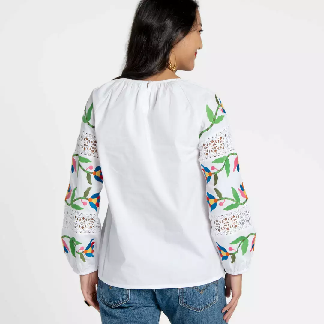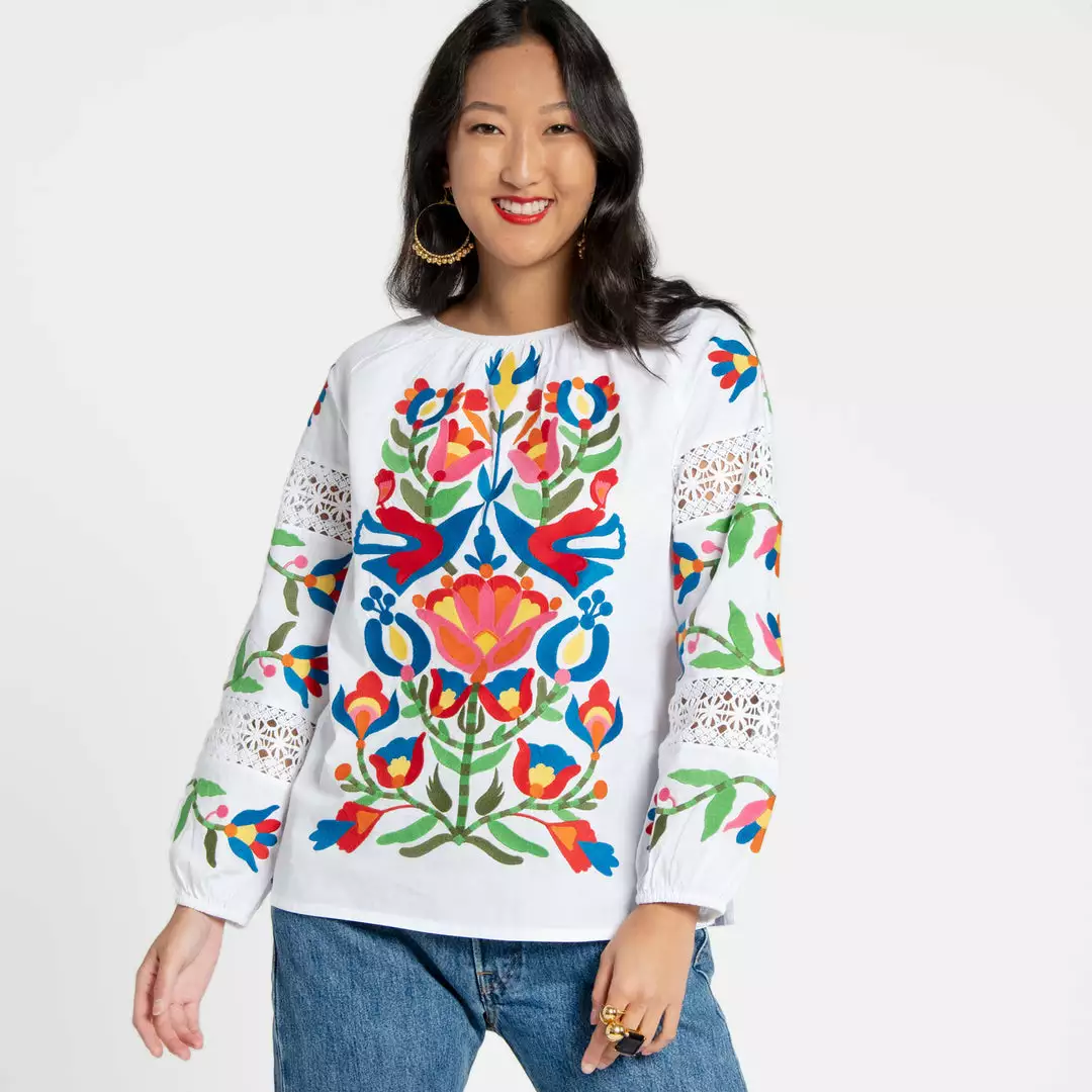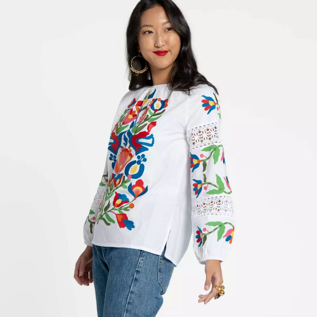 One of our favorite travel basics is our Saskia Blouse, now featuring a new and improved fit! This blouse is a piece that is as vibrant as it is stylish. A lightweight cotton design with blouson sleeve detail make this top the perfect transitional style. Pair with your favorite pair of cropped denim for a cool and casual look. It is sure to be a bright spot in your closet.Â