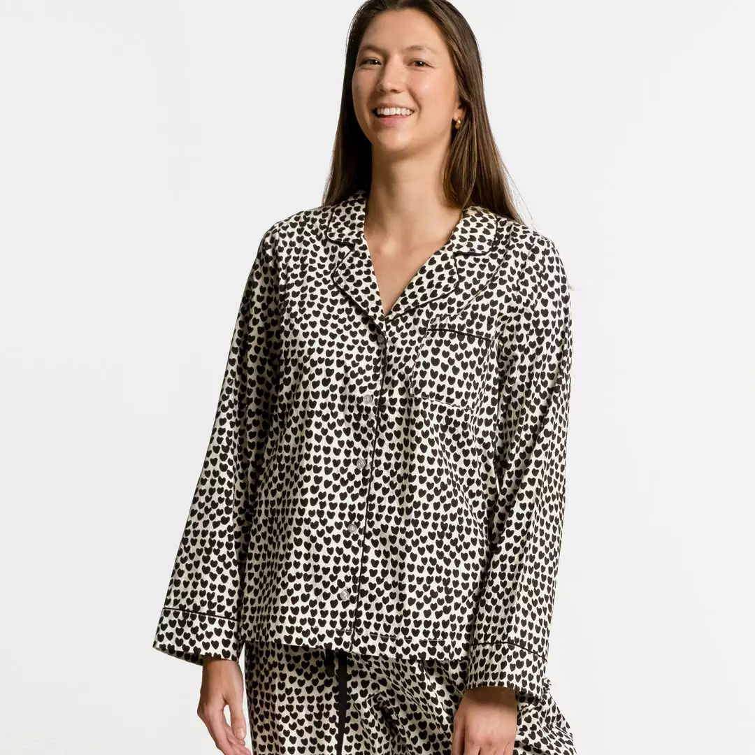 Who doesn’t love a good pair of PJs? Meet our new Baby Hearts Top – made from our favorite cotton poplin. With delicate button details and a fun graphic print, this will be your new favorite pajama top!