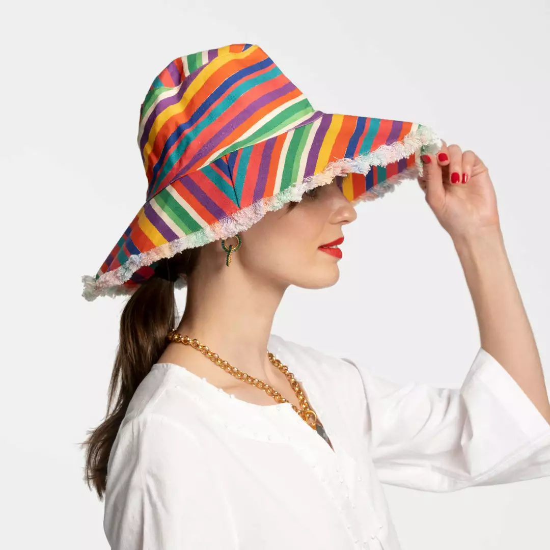 Beat the sun in style with the Canvas Fringe Sunhat featuring our Candy Stripe print. Easy to pack and easy to wear this cotton canvas sunhat is a sunny day staple. Add a pop of color and have fun with your accessories!