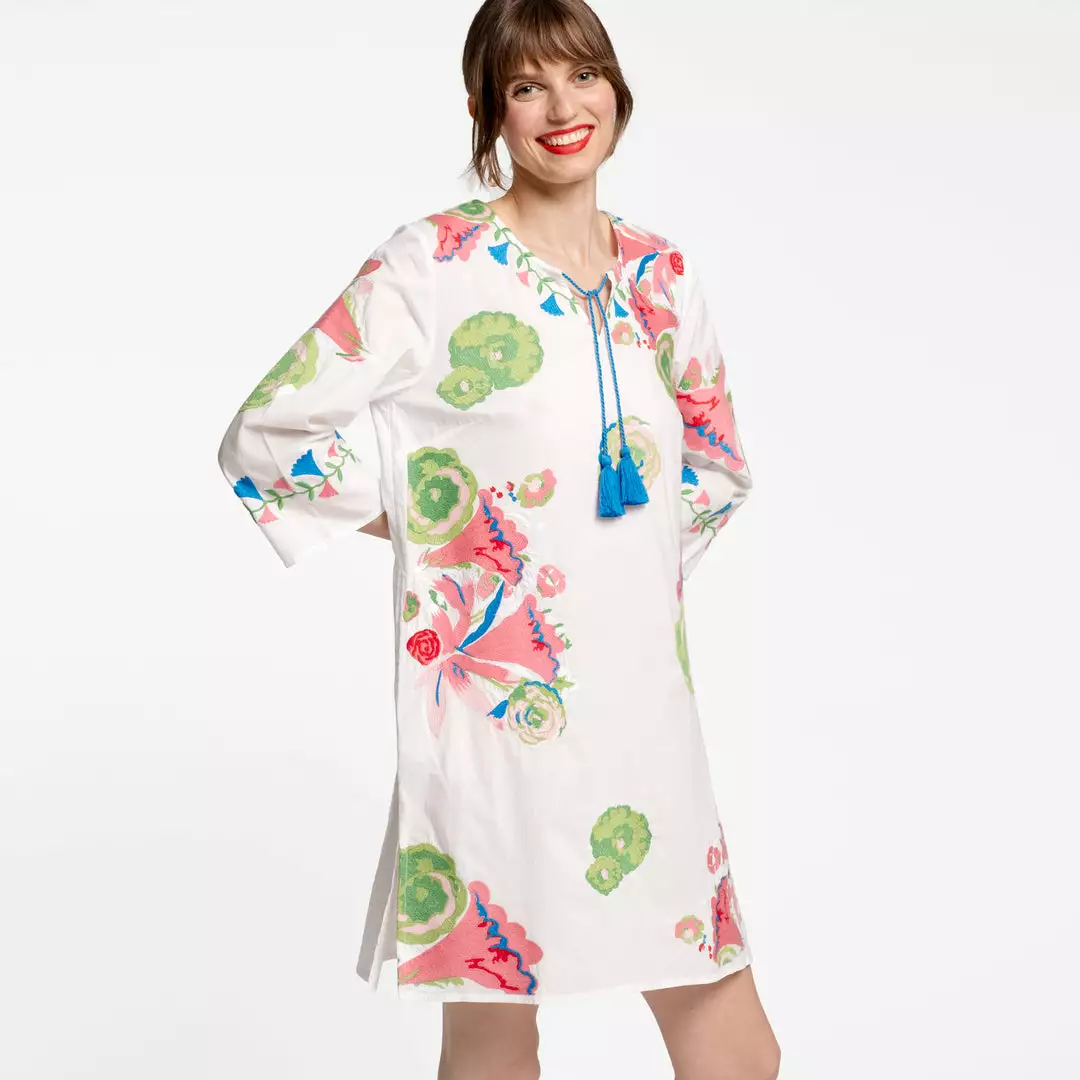 Our best selling Capri Tunic is reimagined with in our new Trumpet Floral print. We love it paired with jeans for errands around town or your bathing suit for a day by the pool or the beach. Its lightweight fabric will keep you comfortable from day to evening.