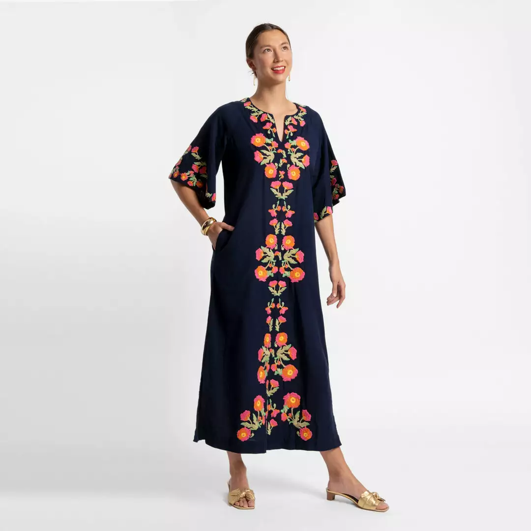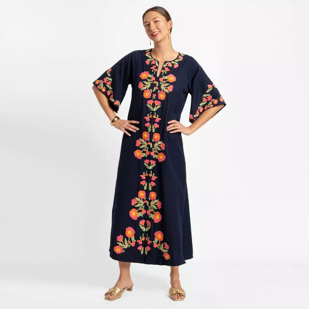 One of our best selling pieces receives a refresh, introducing the Charming Caftan. Featuring custom poppy floral embroidery, this versatile caftan will be a bright spot in your closet.