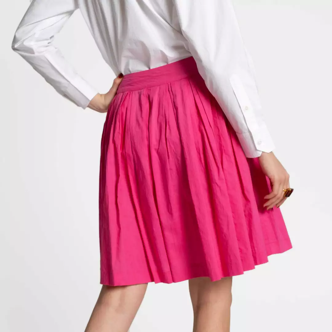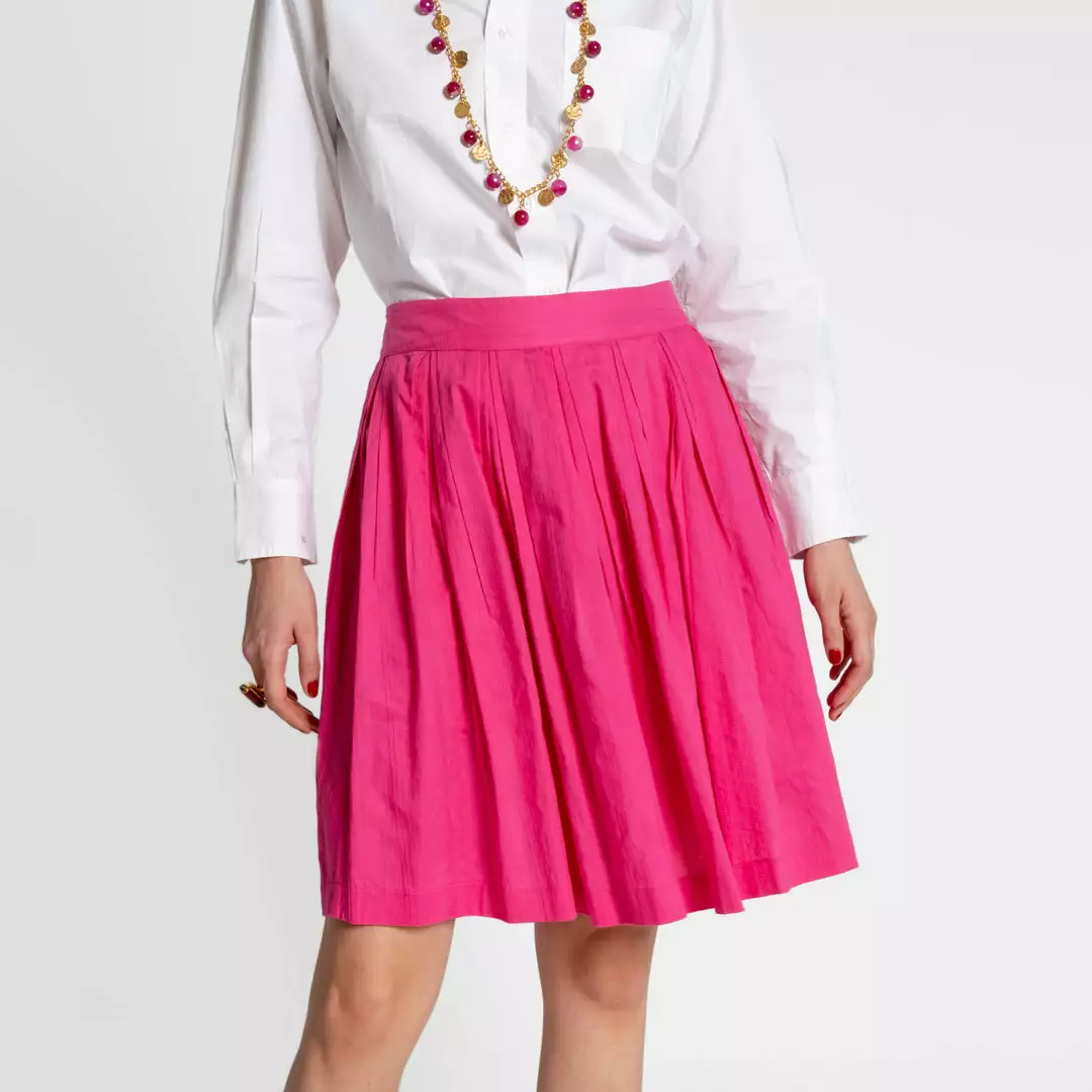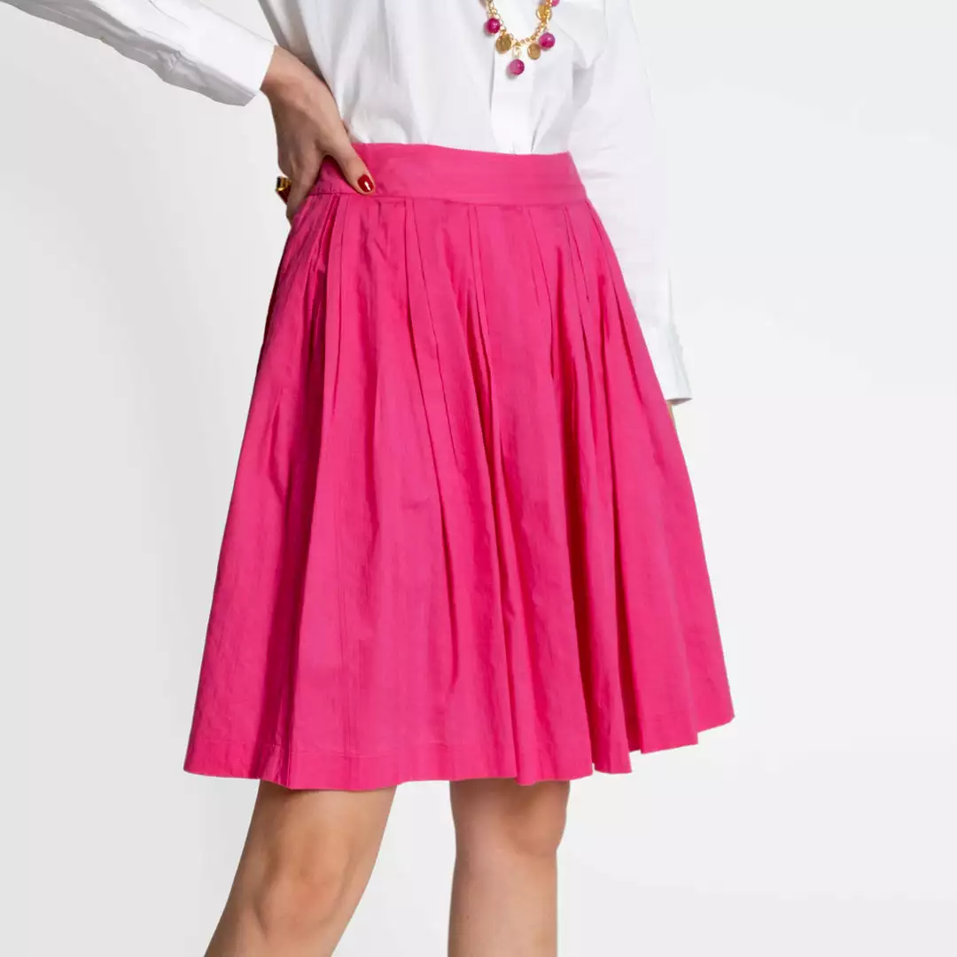 Our new Claire Skirt in cotton is the perfect solid base for any outfit. This “just over the knee” pleated skirt in is the one you will throw on all summer long, paired perfectly with a sweater or a tee.