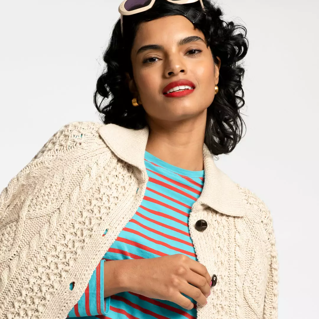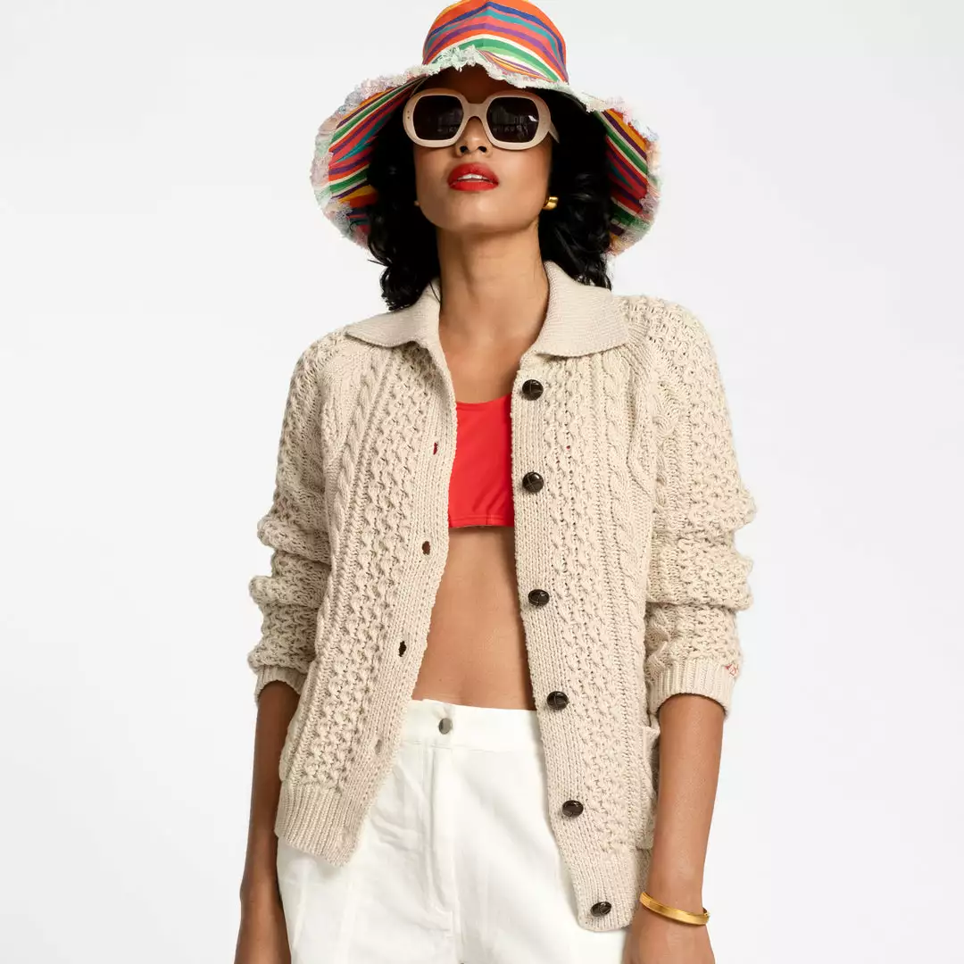 Our best selling vintage inspired Fisherman Sweater has received a warm weather update in a cotton cashmere blend. Often styled in our campaign photoshoots, this sweater is equal parts versatile and stylish. Intricate weaving and leather finished buttons add a special finishing touch.