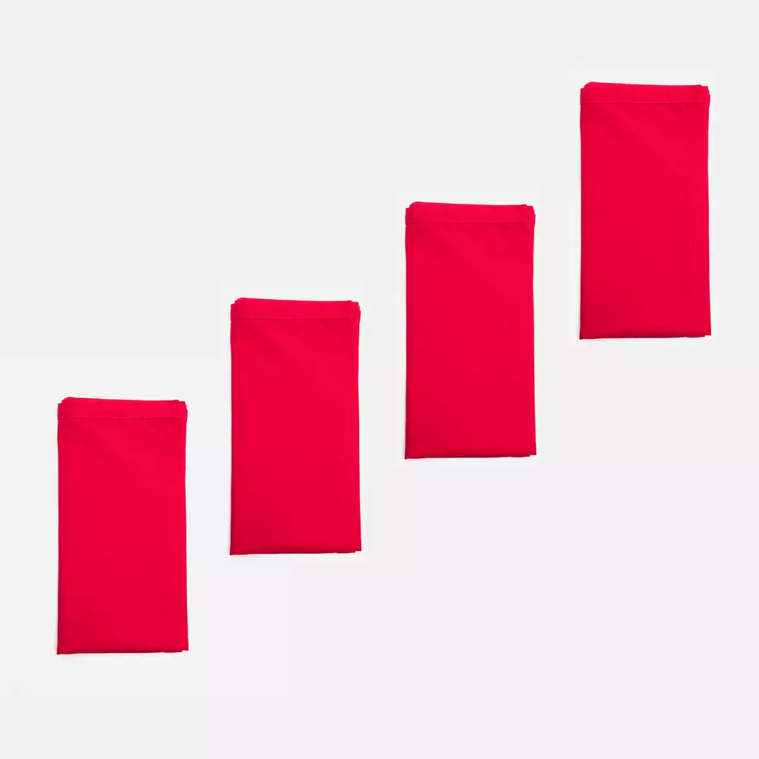 Add these colorful red Dinner Napkins to your tablescape or bar top at your next event! This set of four dinner napkins is perfect to pair with our rattan placemats, Veracruz Tablecloths, and will have you party ready.
