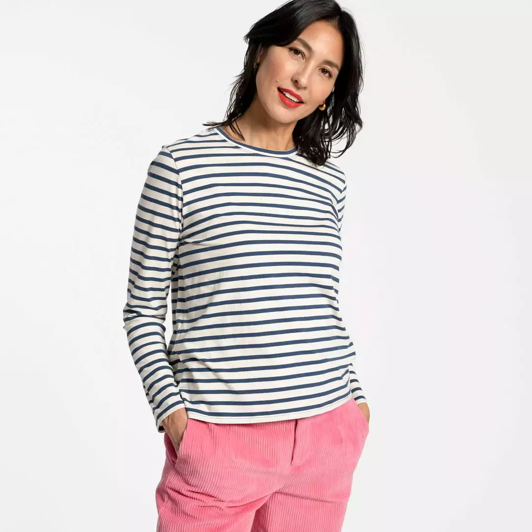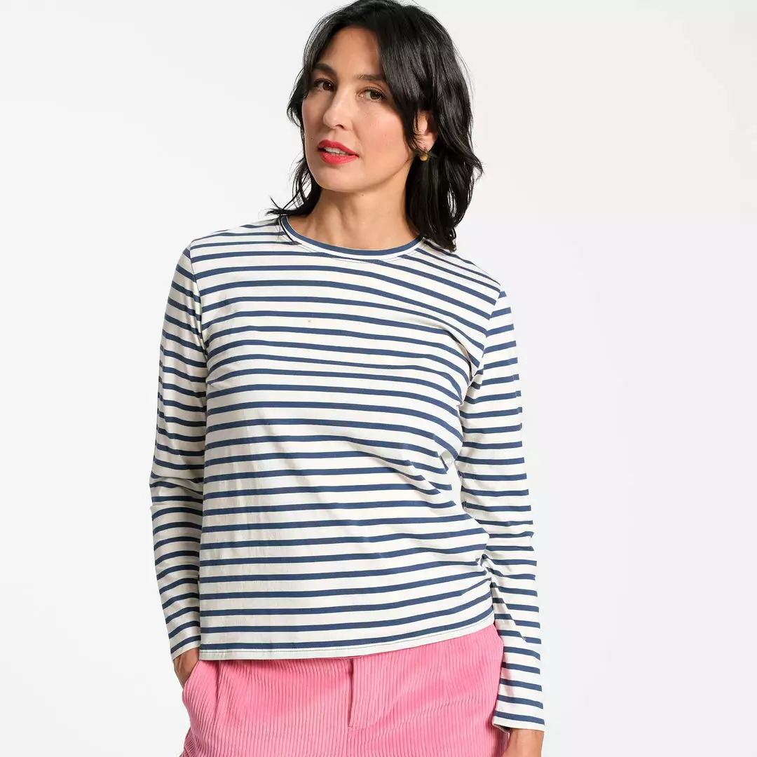 Our long awaited perfect Long Sleeve Striped Tee is here! Constructed in soft pima cotton, this top is a great layering piece for chillier days or perfect on its own paired with a pair of cords.