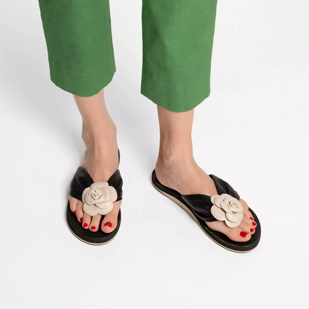 You will not want to take off our new Magnolia Cloud Thong Sandals. An oyster flower adorns these comfortable and stylish slides. Pair with any of our new dresses or tunics for the perfect sunny day look.