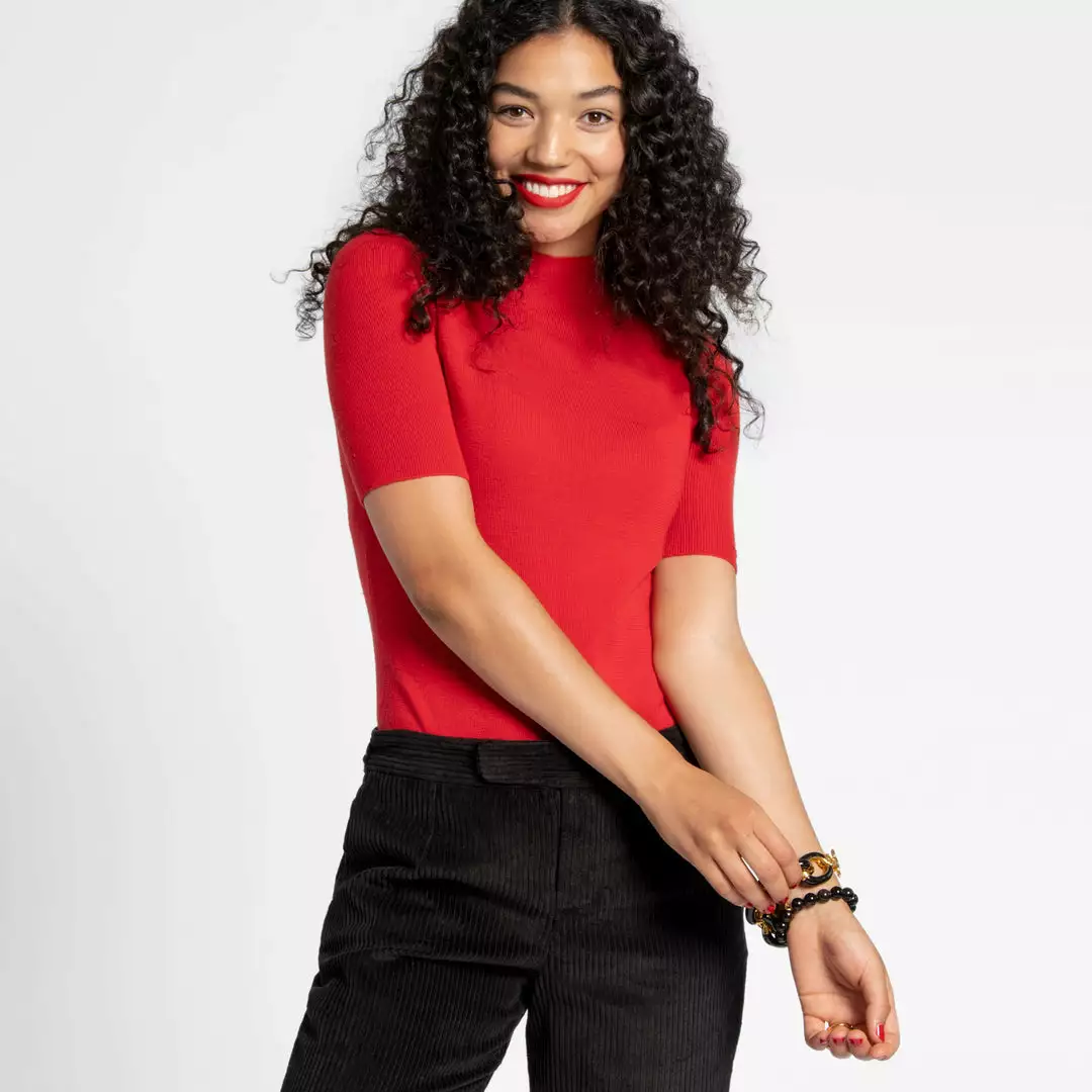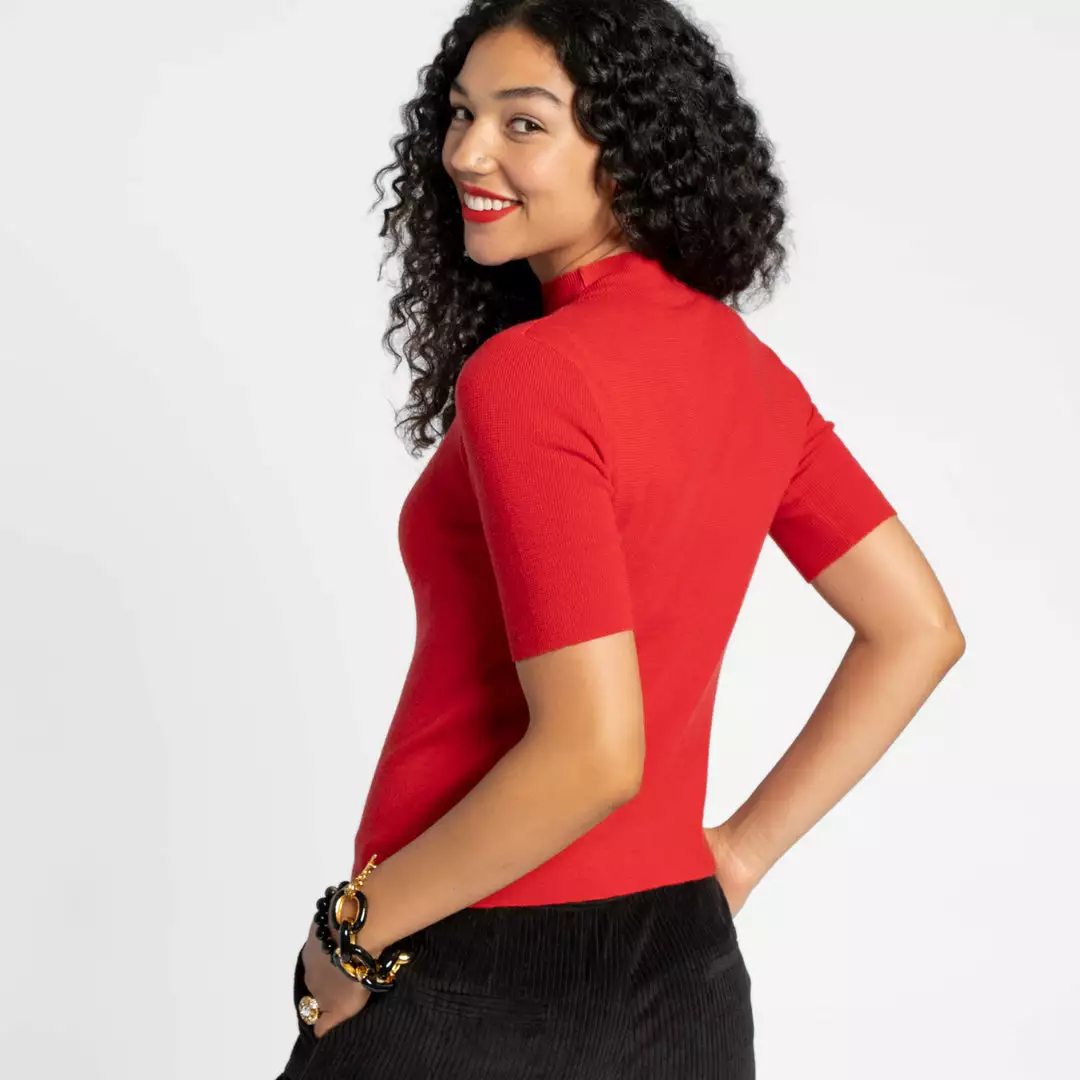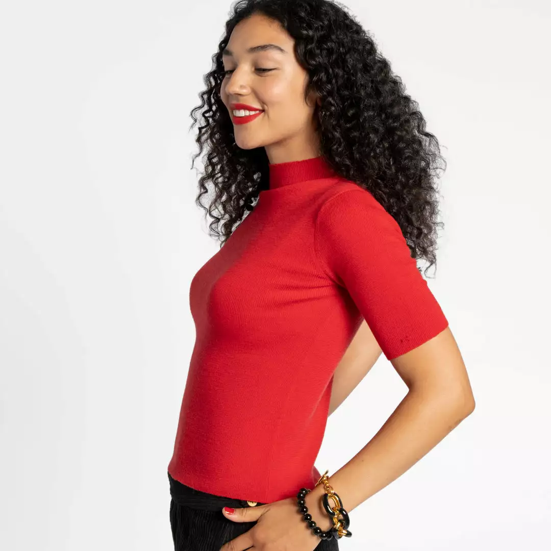 Our Marie Merino Mock Neck, minimalist style short sleeve mock neck top in all over rib knit construction. Perfect for layering, we are loving this transitional piece.