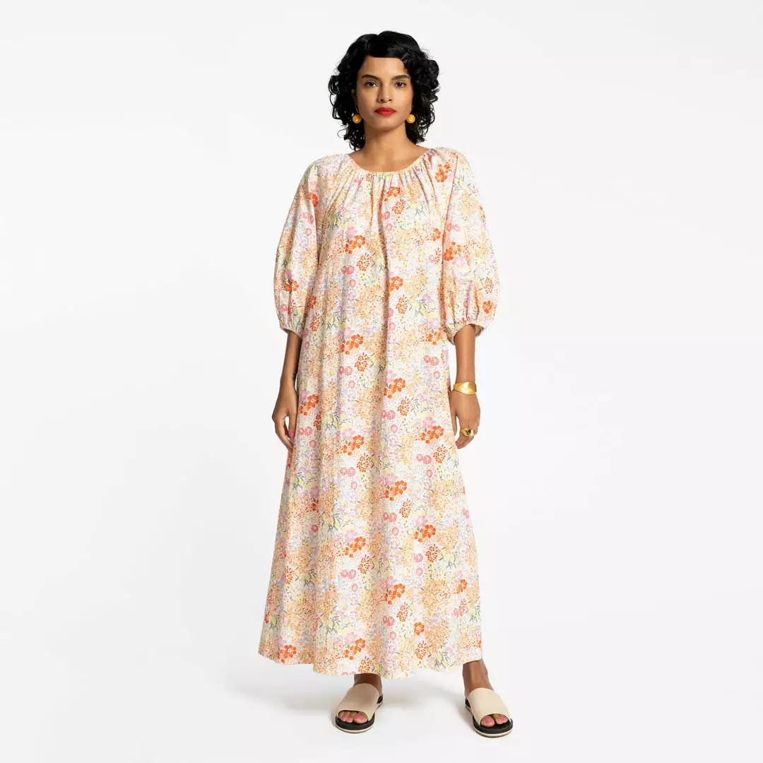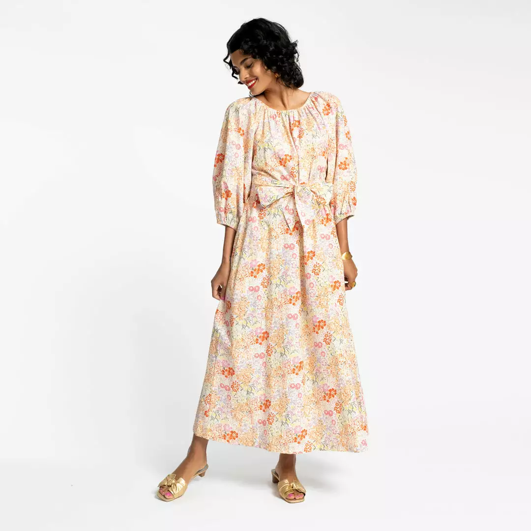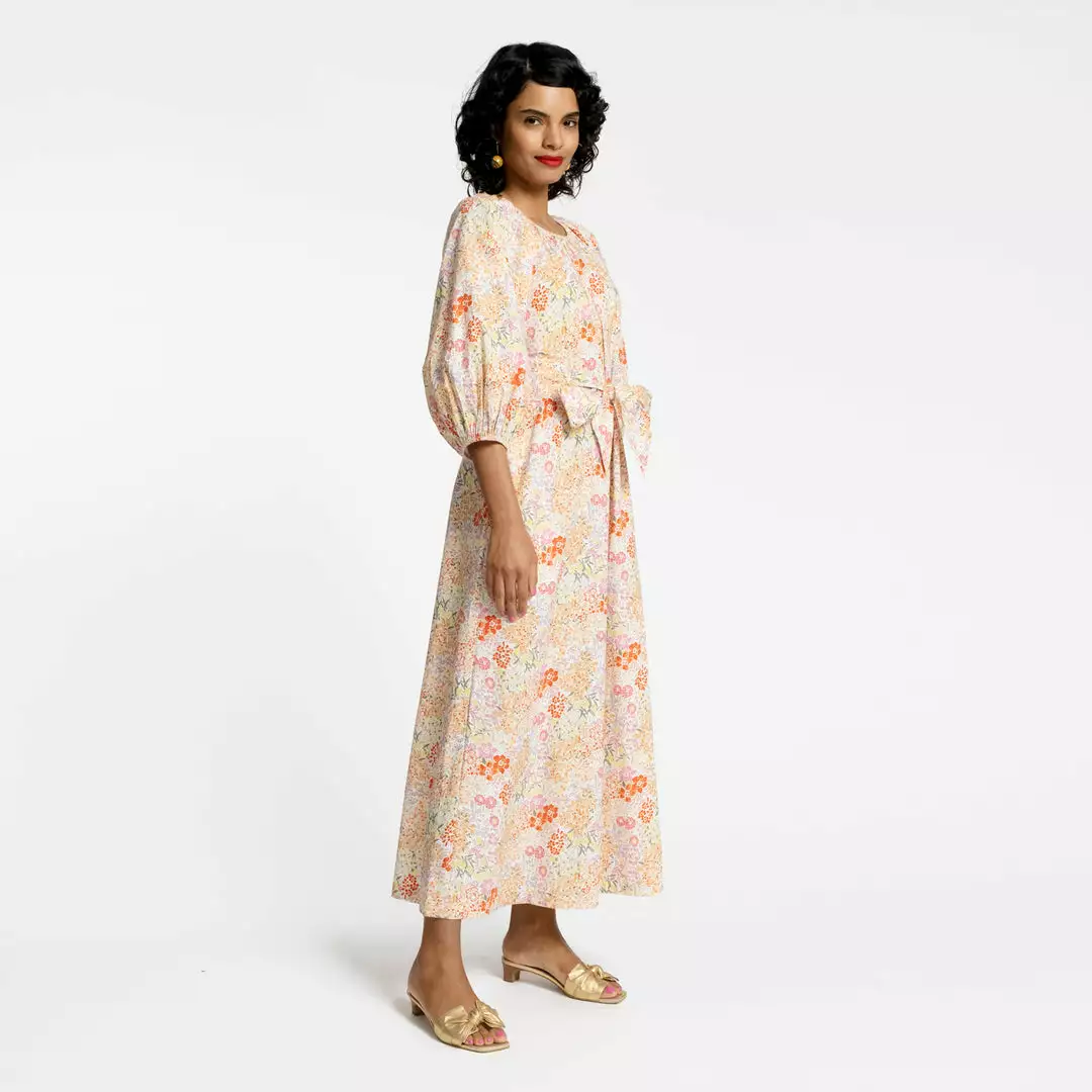 Our Bliss Maxi Prospect Park reminds us of summer strolls in the garden, when flowers are at full bloom. This maxi length dress on cotton poplin can be worn belted or not and has a dramatic balloon sleeve with elastic wrist and neckline. It is such a beautiful dress that can be worn for any occasion from the beach to the ball.