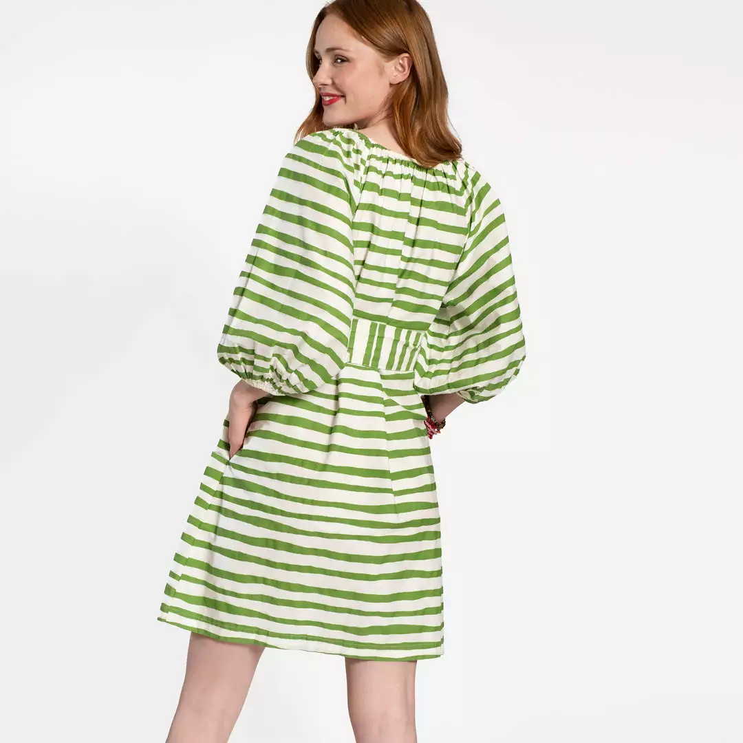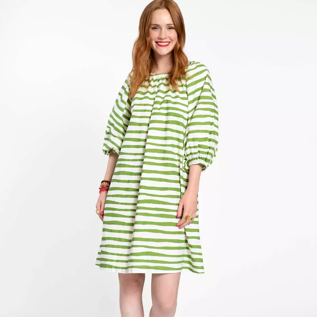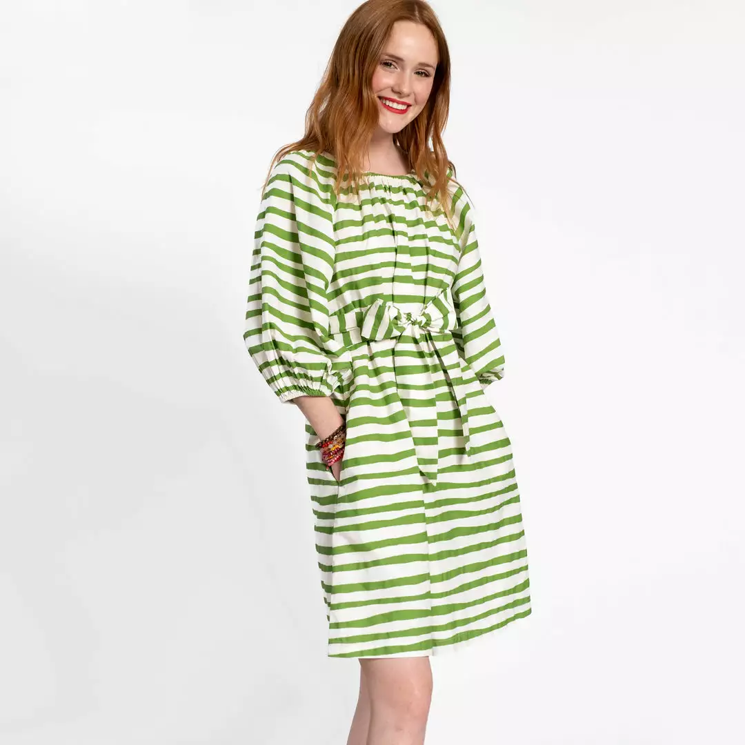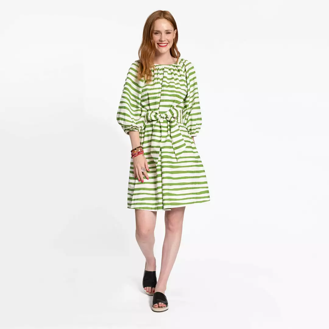 Our new Bliss Mini Dress is an FV team favorite silhouette and features our new signature Painterly Stripe print.