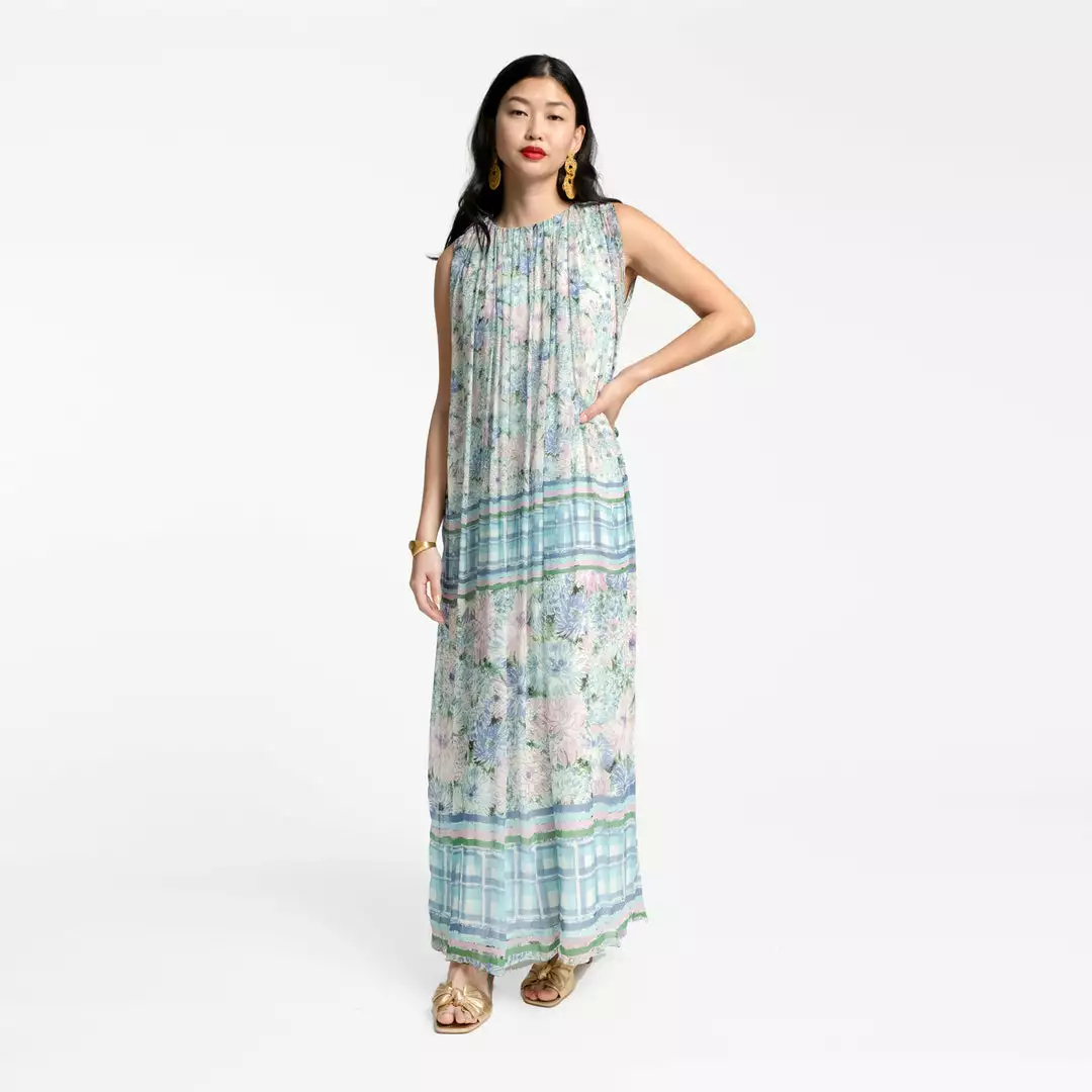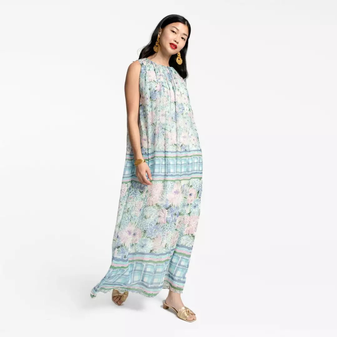 Elegant and ethereal, our Endora Gown will help you breeze into Summer Cocktail parties like a dream. Our custom prints adorn this 100% silk sleeveless dress which is lined for opacity. A bewitching silhouette!