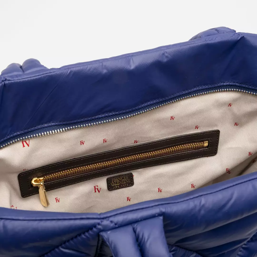 Quilted satin nylon. Interior zip pocket. Dual slip pockets. Zippered top. Signature FV cotton twill lining.