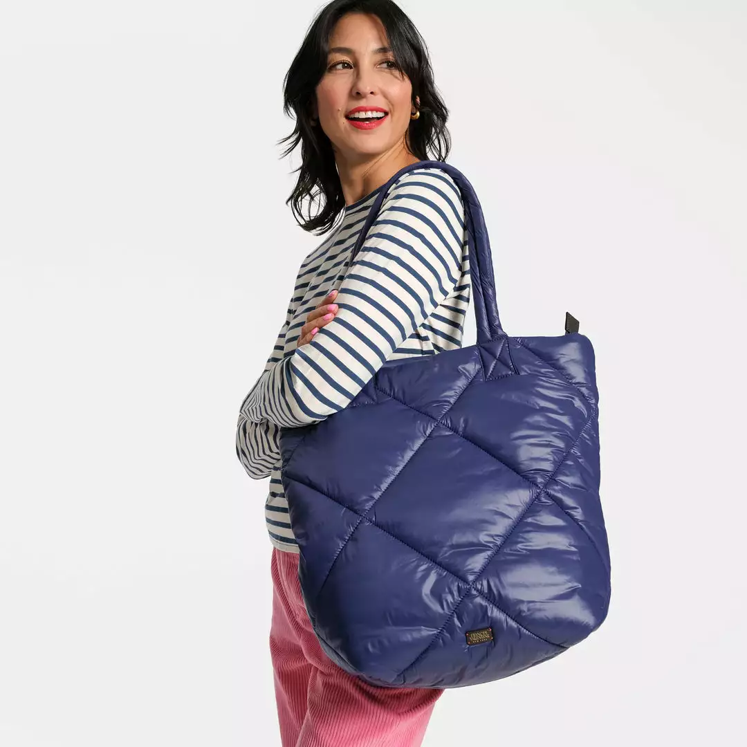 Looking for a lightweight stylish bag that can fit all of your essentials without being bulky? Look no further than our North South Tote in quilted satin nylon. This bag is can be folded or packed up without losing its shape, making it perfect for travel or when you are on the go.