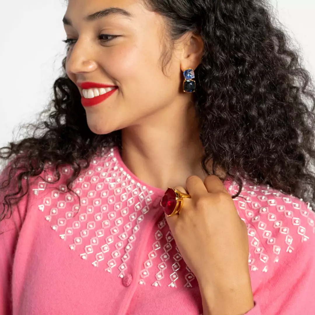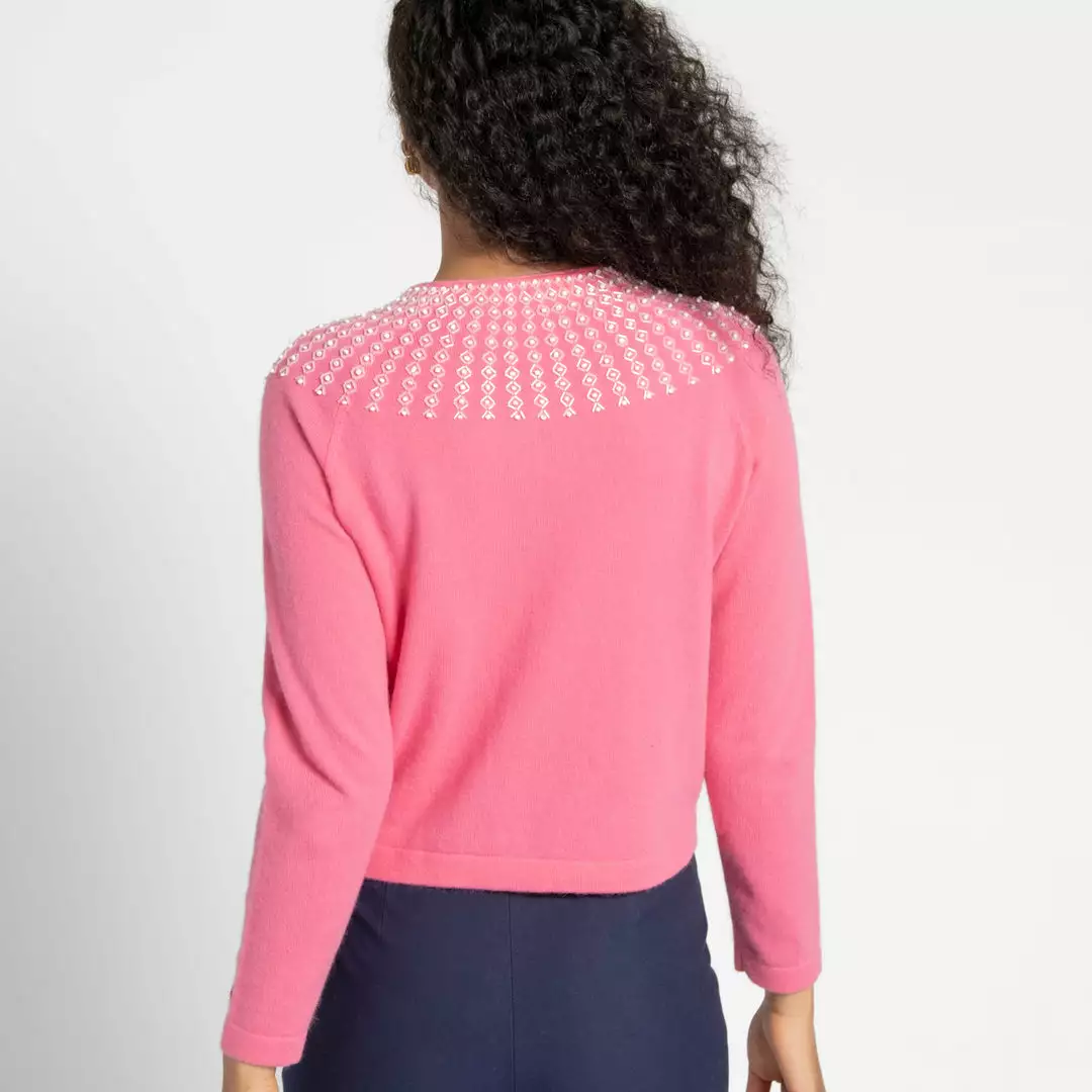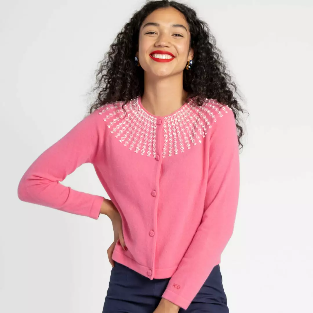 Meet our new RBG Beaded Cardigan. The hand worked beaded yolk with pearl finish beads was inspired by the lace collars worn by late Justice Ruth Bader Ginsberg. This new sweater features our vintage style Darling Cardigan silhouette.