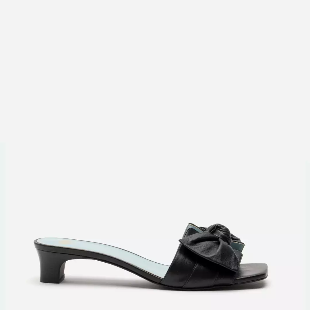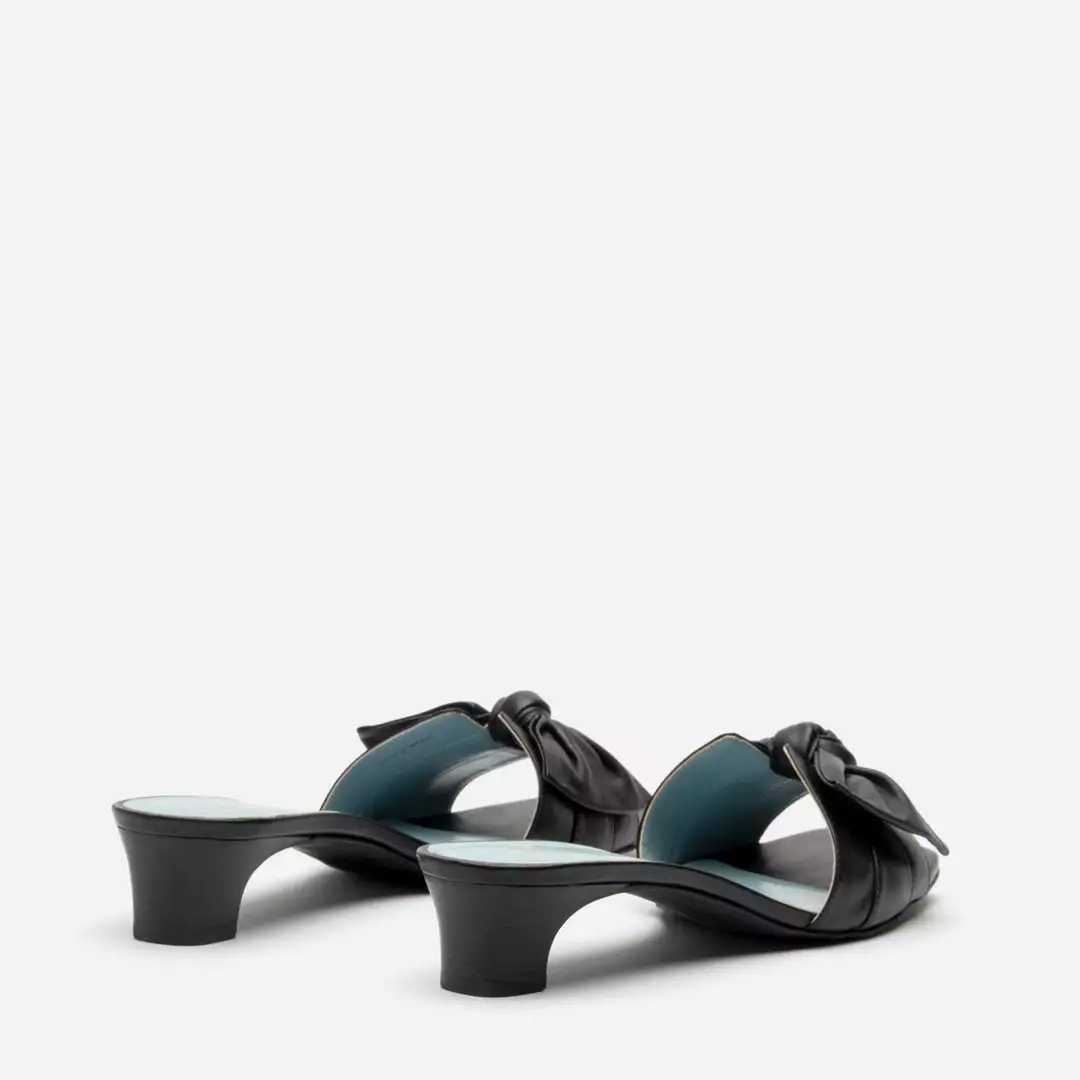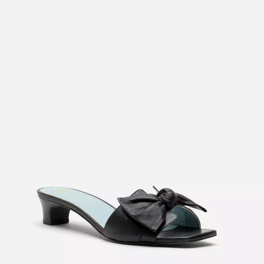 Featuring a nappa bow detail and a stacked wooden heel, the Sandy Slide Heel is not your average mule.
