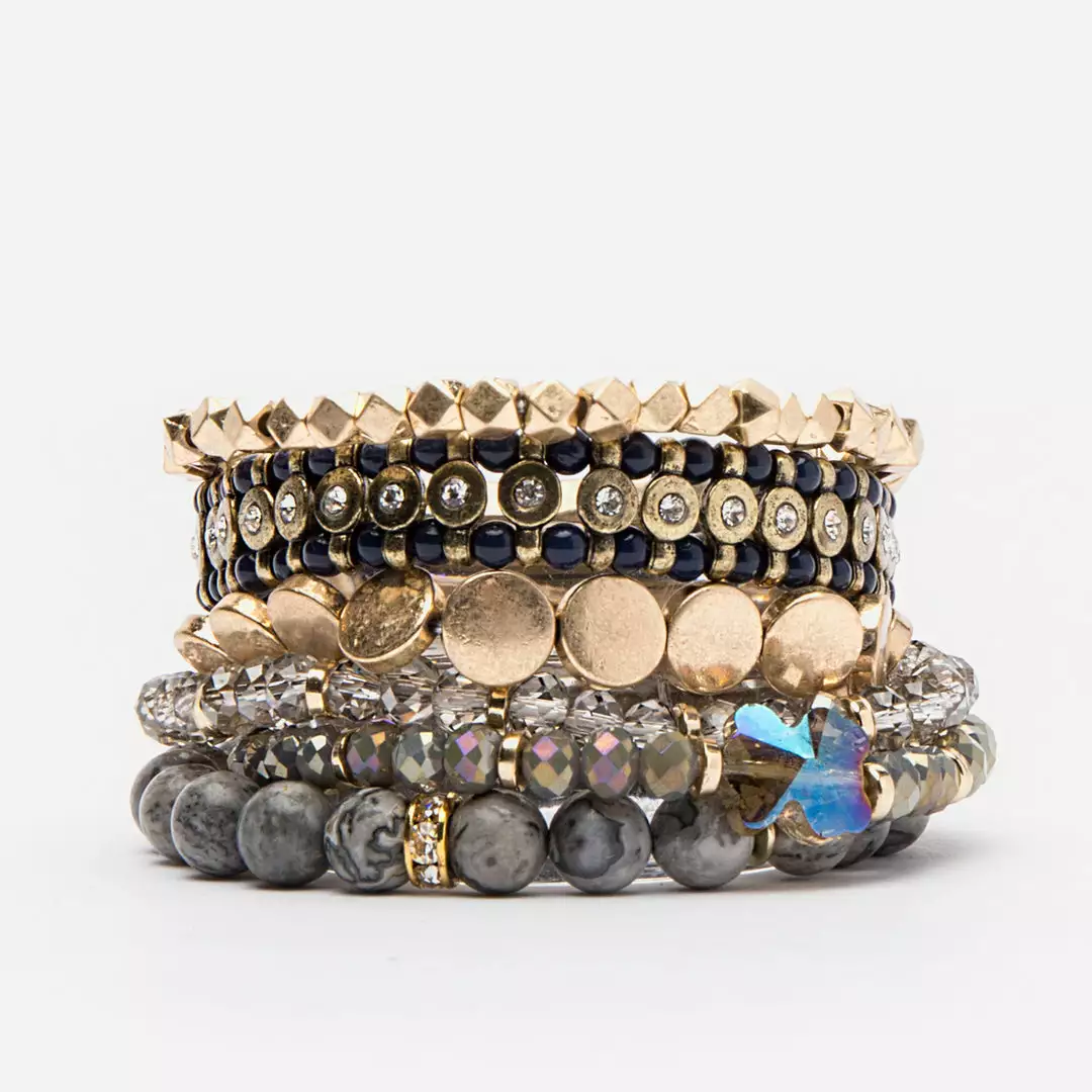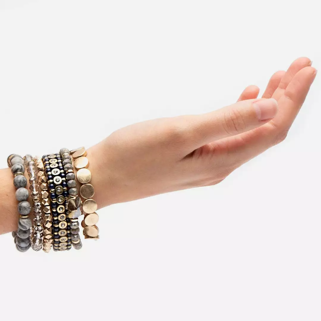 Colorful stacked bracelets. Mixed stacked stretch bracelets. Fun jewelry additions to mix and match.