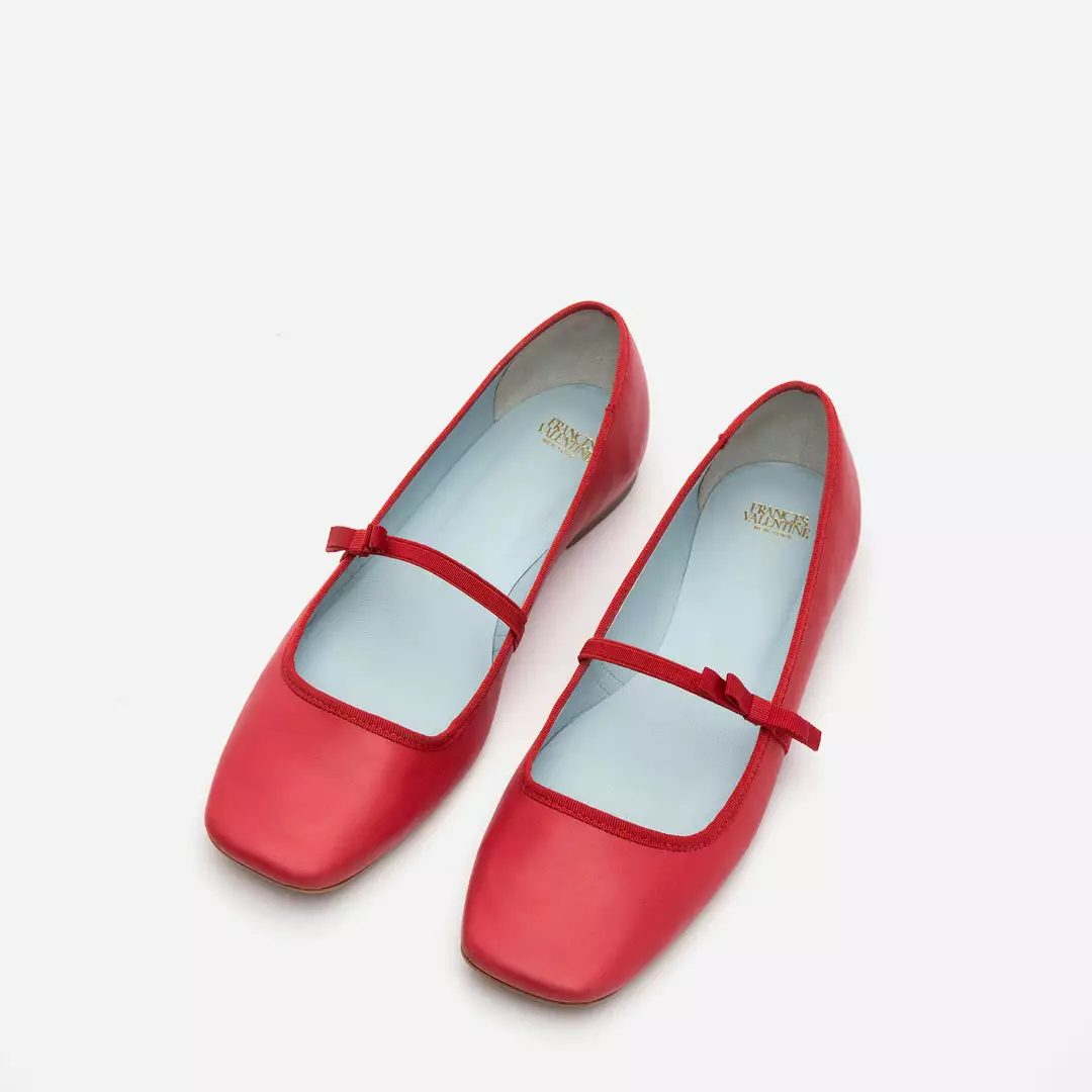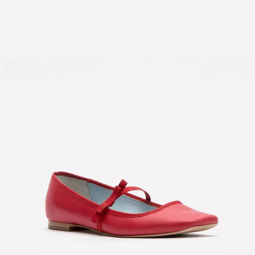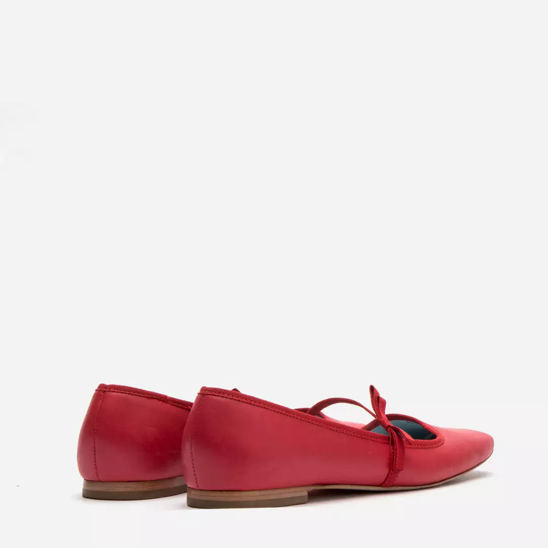 Jude Mary Jane Leather Flats in soft calf leather with elastic bow details. Red leather flats are a fun update from the basic ballet flats.