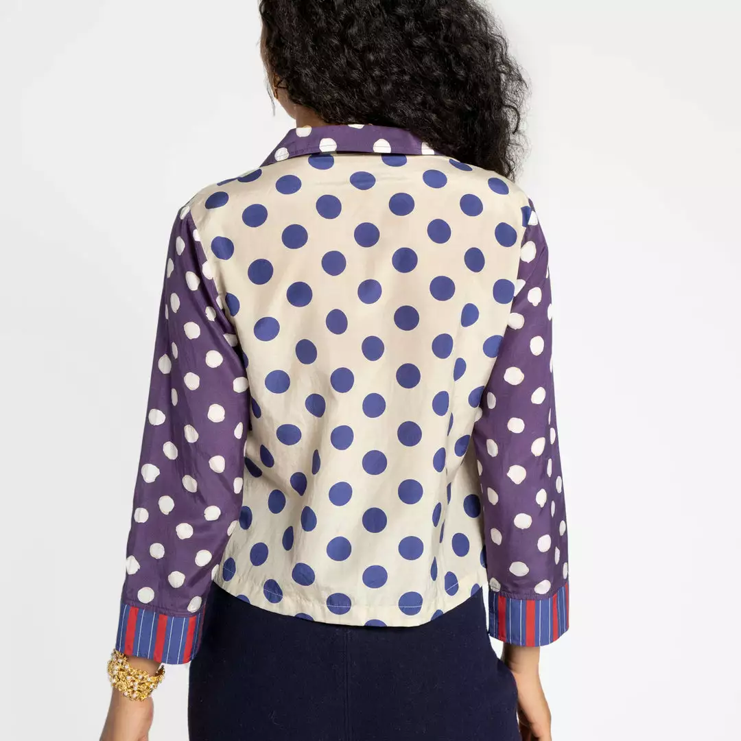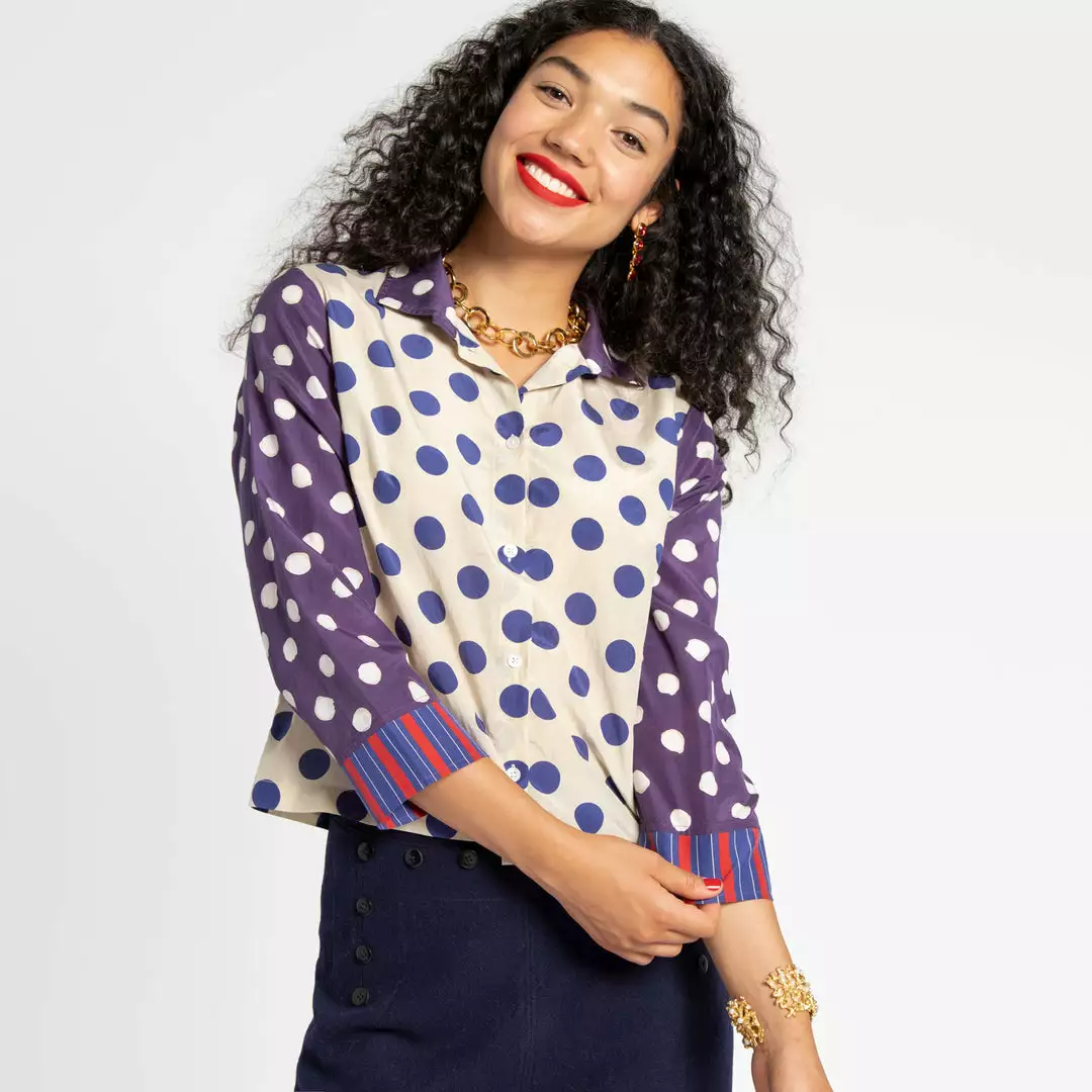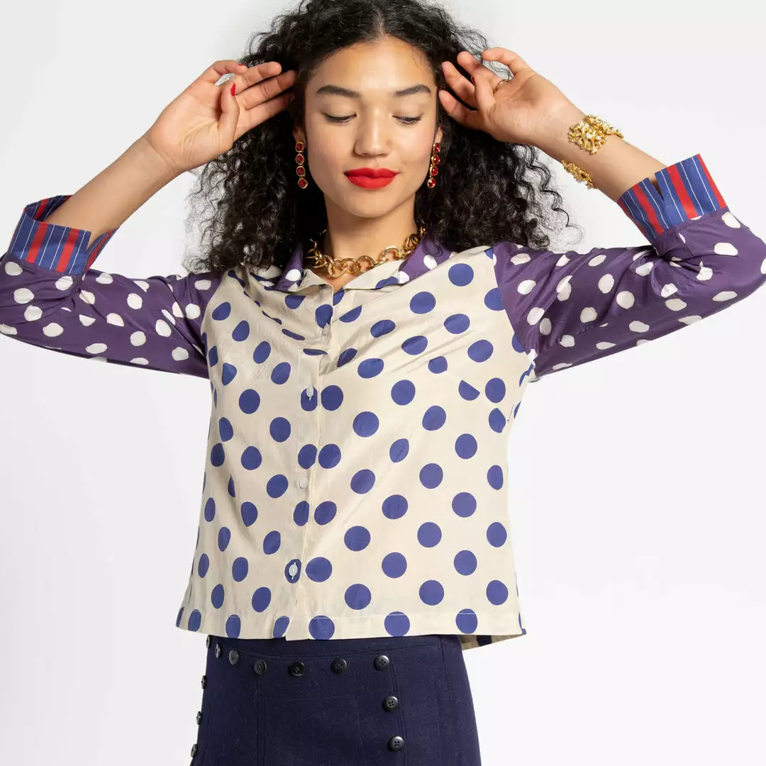 Our custom Silk Polka Dot Top is a great piece to pair with our new Pencil Skirt or any of our other bottoms for Fall. The prints on this top complement each other perfectly and is also a great layering piece. Mixing and matching patterns never looked so good!
