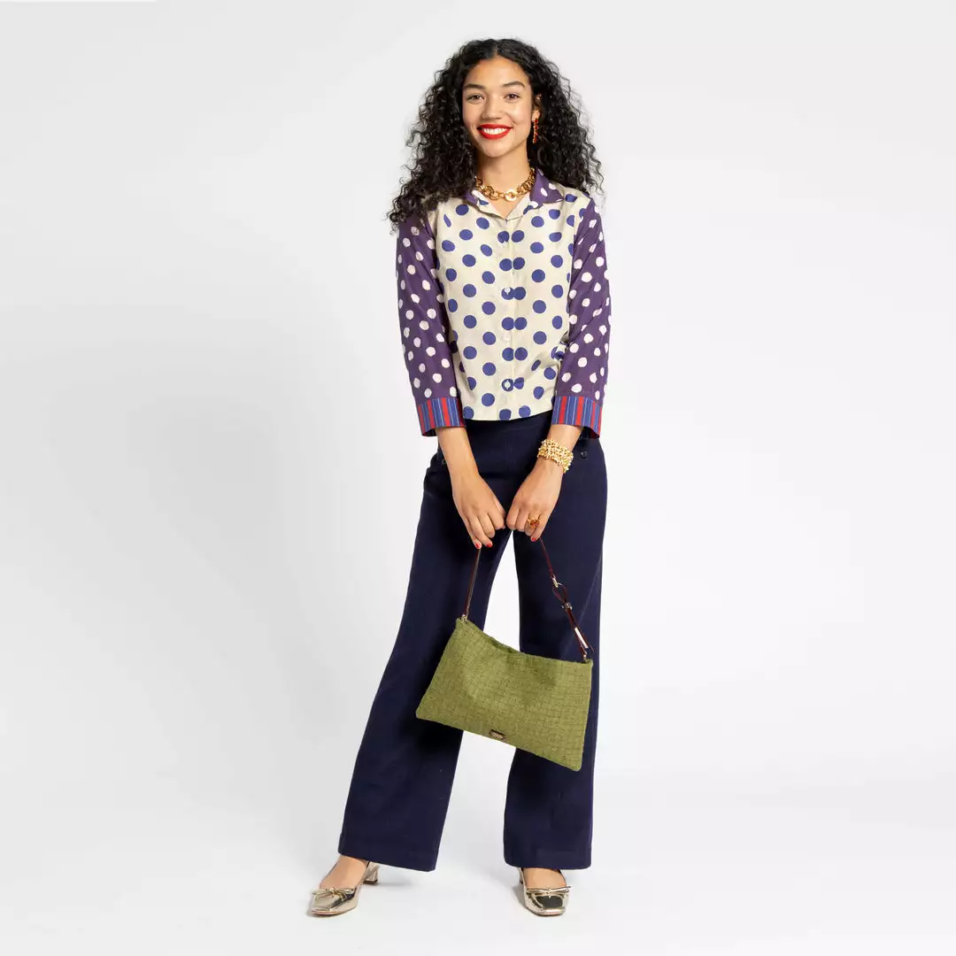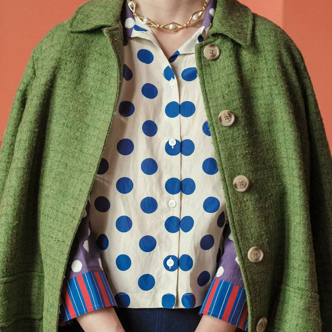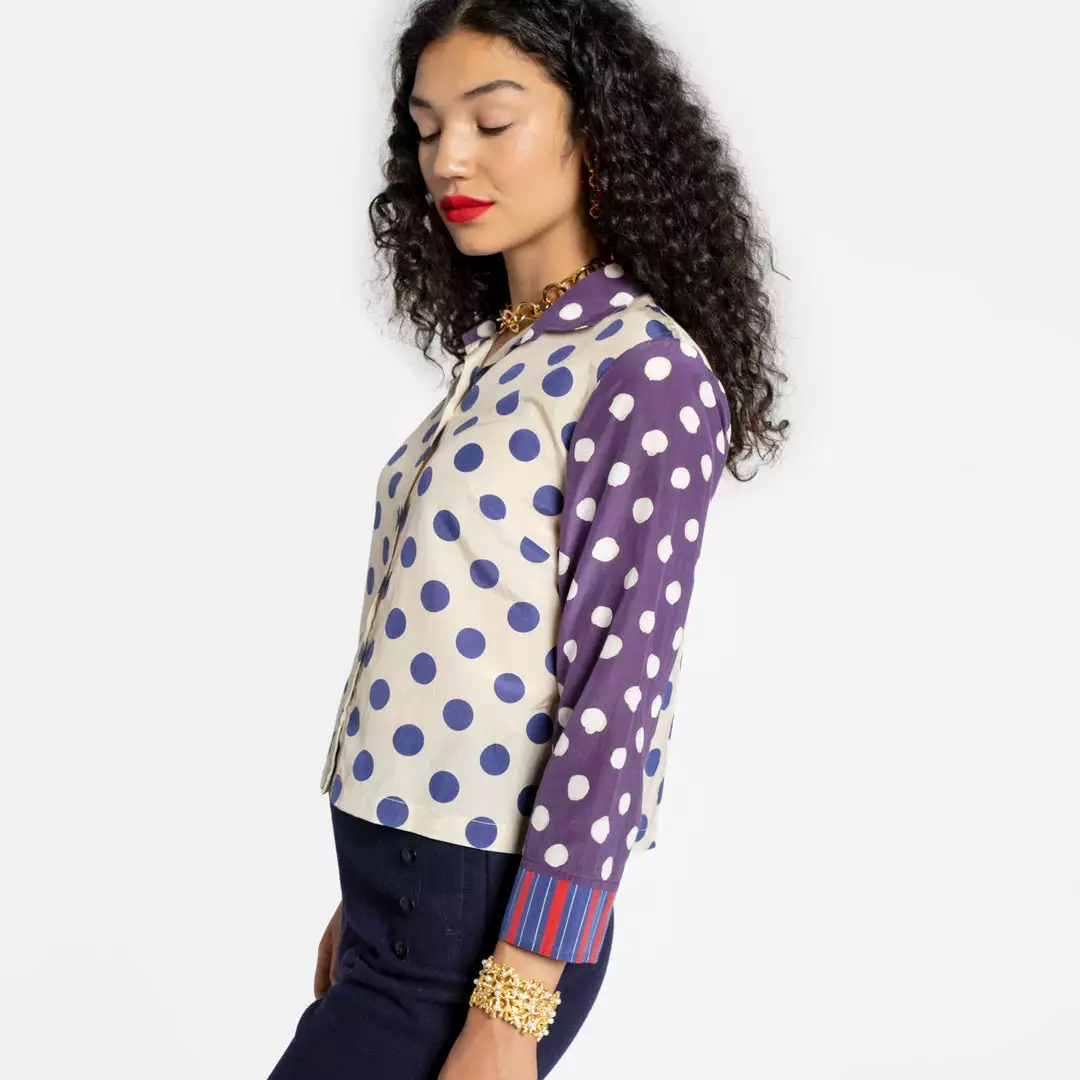 Our custom Silk Polka Dot Top is a great piece to pair with our new Pencil Skirt or any of our other bottoms for Fall. The prints on this top complement each other perfectly and is also a great layering piece. Mixing and matching patterns never looked so good!