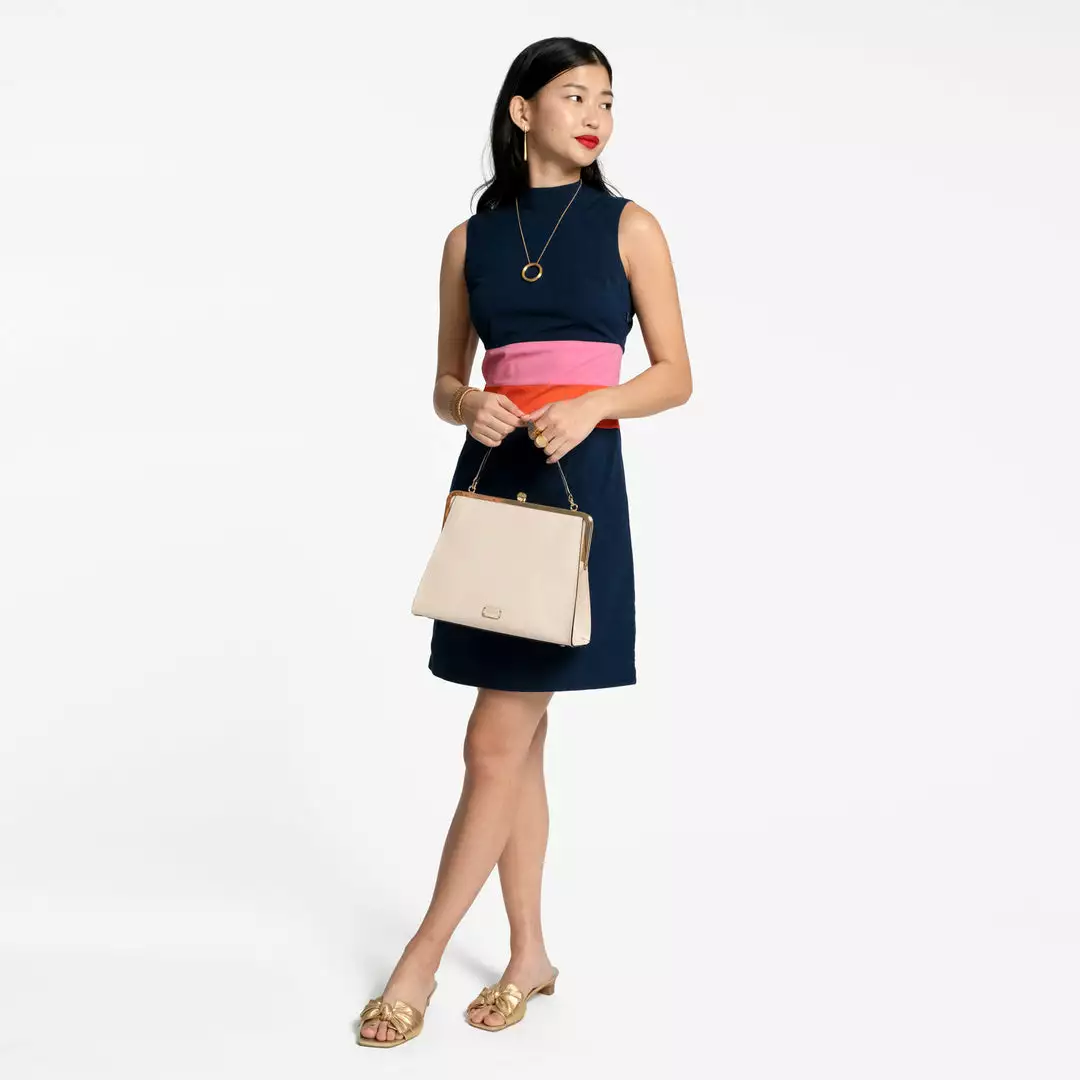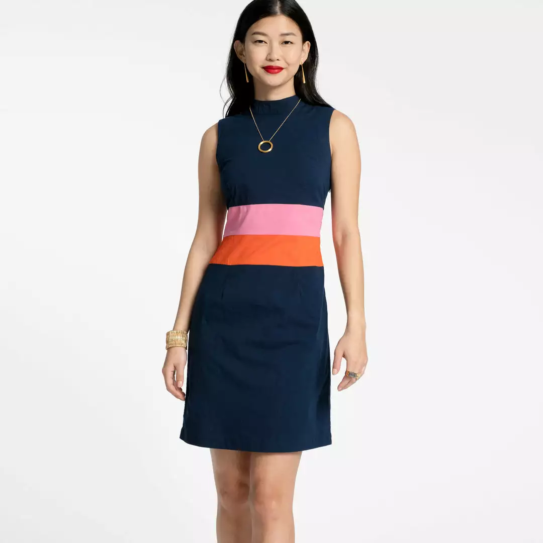 This silhouette reminds us of the patterns that mom used to sew our dresses for school dances at home. Reimagined for today, our Simplicity Dress has a flattering fit. Sleeveless, with a slight mock neck and hits right above the knee, this will be your new favorite dress.