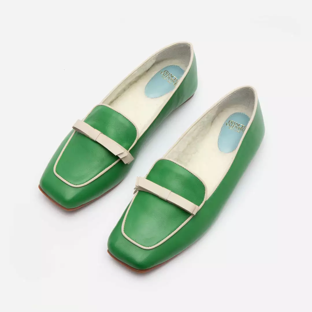 Our Suzanne Cozy Loafer crafted in nappa leather with faux shearling is a cozy take on one of our best selling styles. A contrast leather bow adds a feminine touch to these everyday shoes.