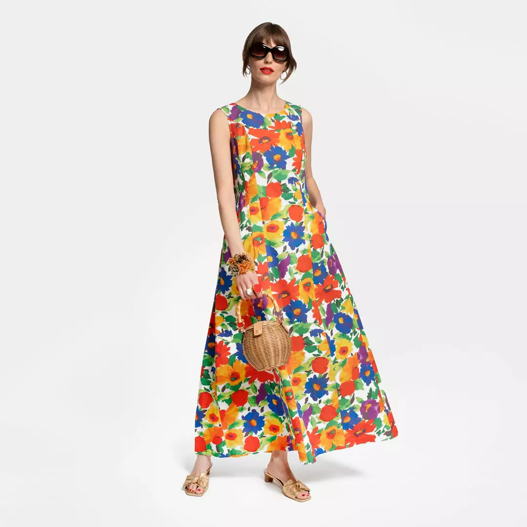 Perfect for summer cocktail parties, our Waikiki Dress is a sure showstopper. This sleeveless dress features a decorative, yet subtle train that moves ever so beautifully as you walk. Printed on cotton poplin with our Floral Explosion print, this dress reminds us of long summer days in the garden, when flowers are at full bloom.