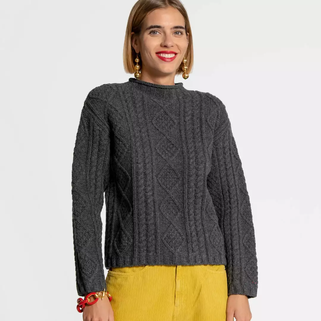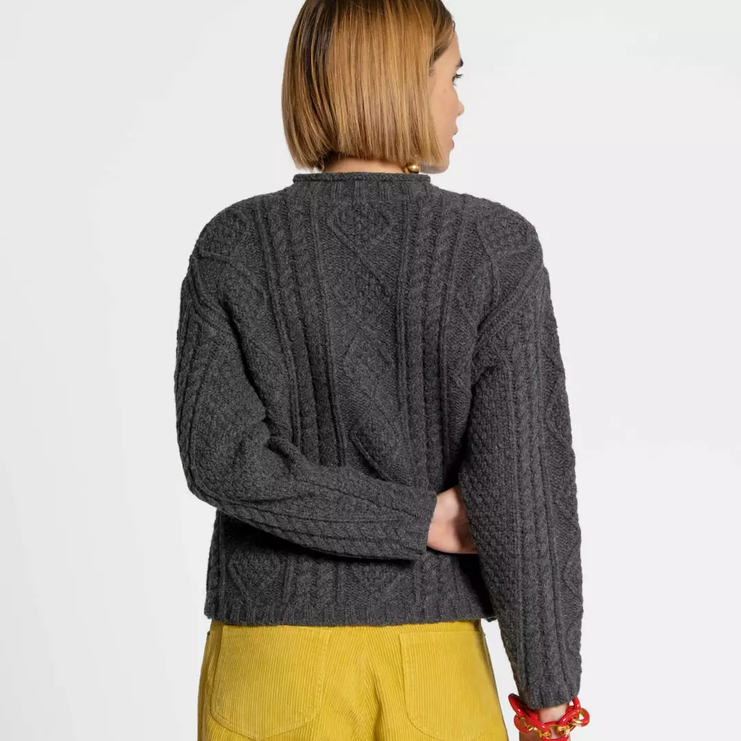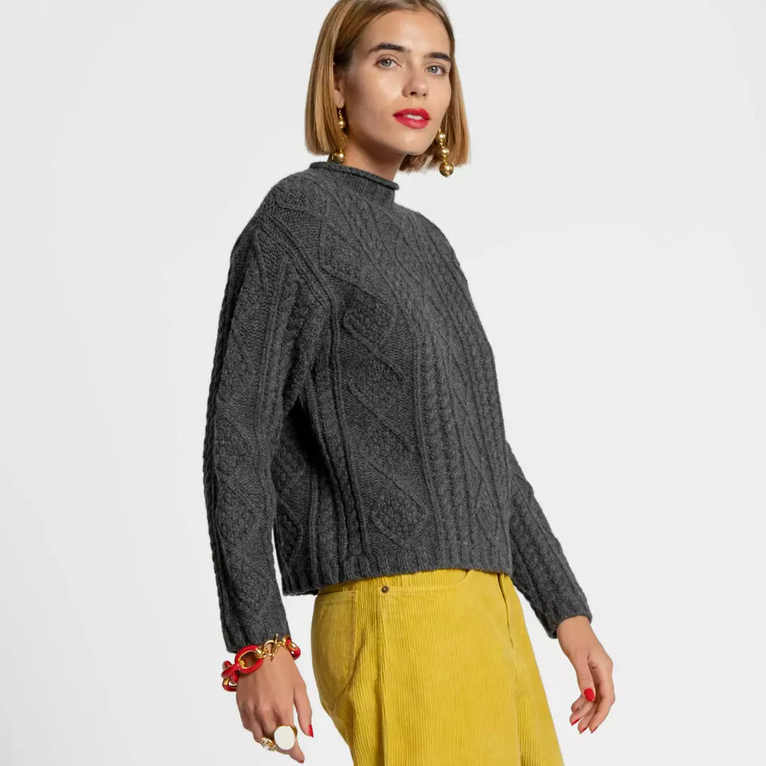 Introducing the Wool Fisherman Skipper Pullover, a classic “Aran” style cable pullover with roll edge collar and drop sleeves. This effortless classic can be worn anywhere and easily styled with your favorite pieces.