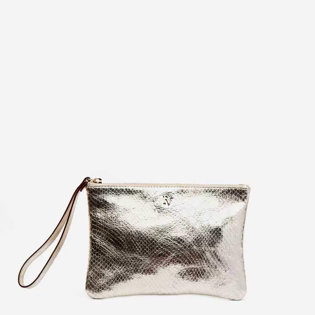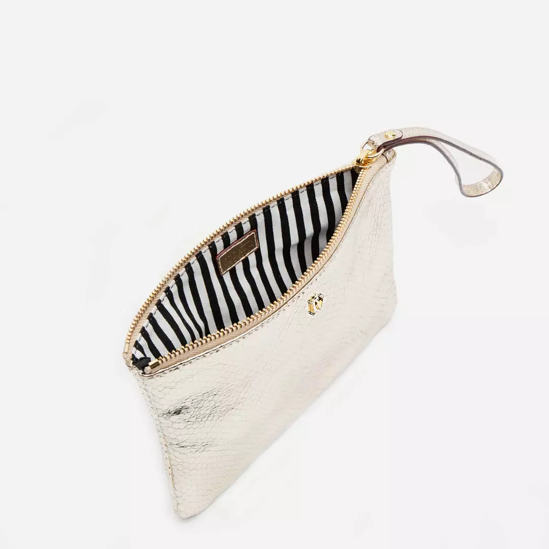 New wristlet in snake printed leather. Perfect for carrying all your small essentials. Wear it on your wrist or keep it in your favorite Frances Valentine bag.