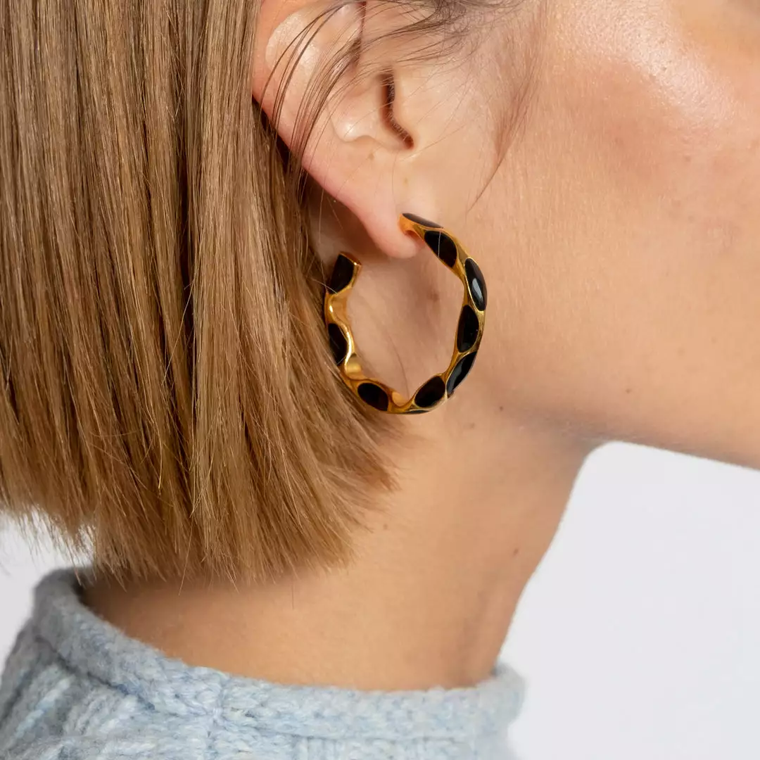 Black and Gold Enamel Hoop Earrings, a twist on your classic hoop earring.