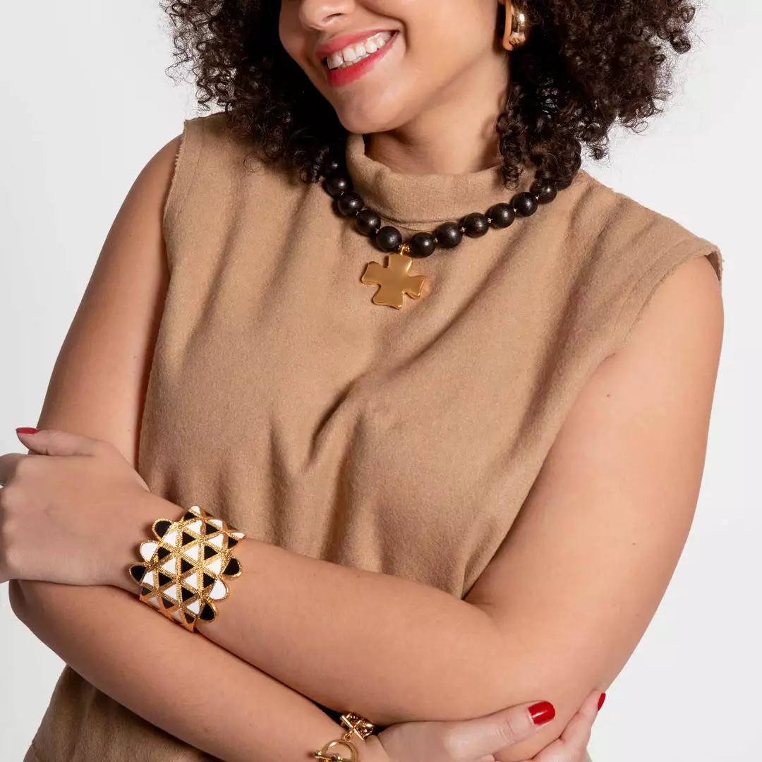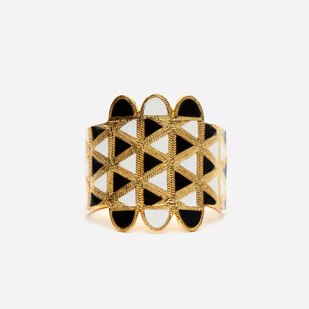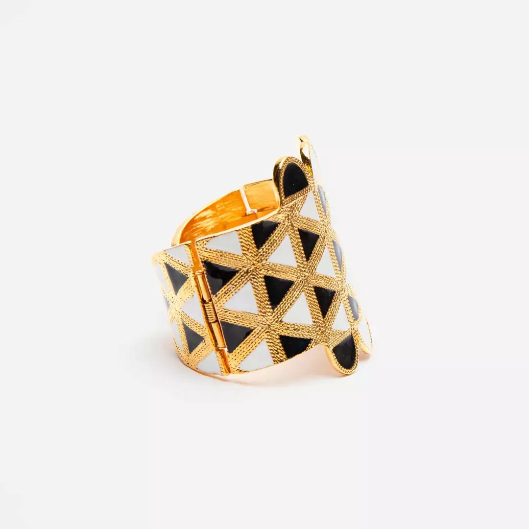 Statement making black and gold Geometric Cuff Bracelet.