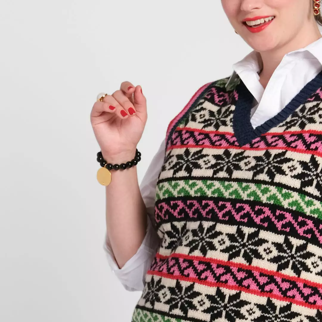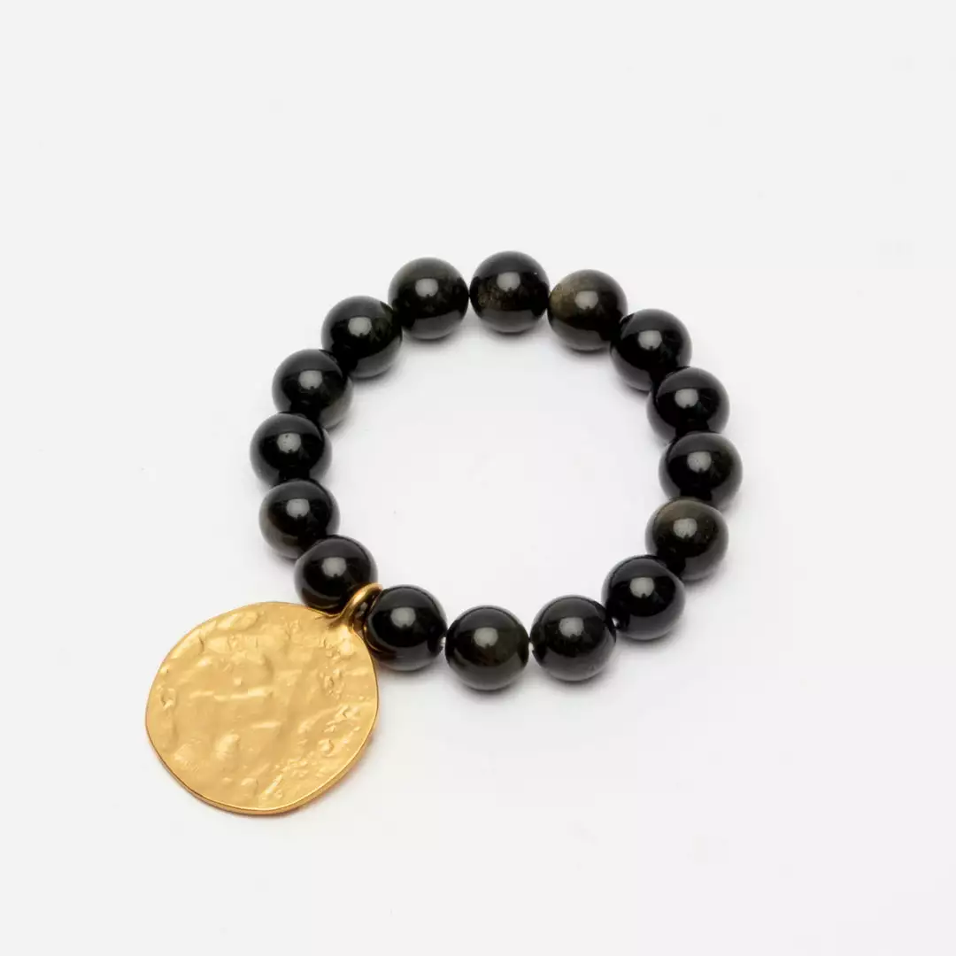 Slip on our new Black Bead Shilling Bracelet.