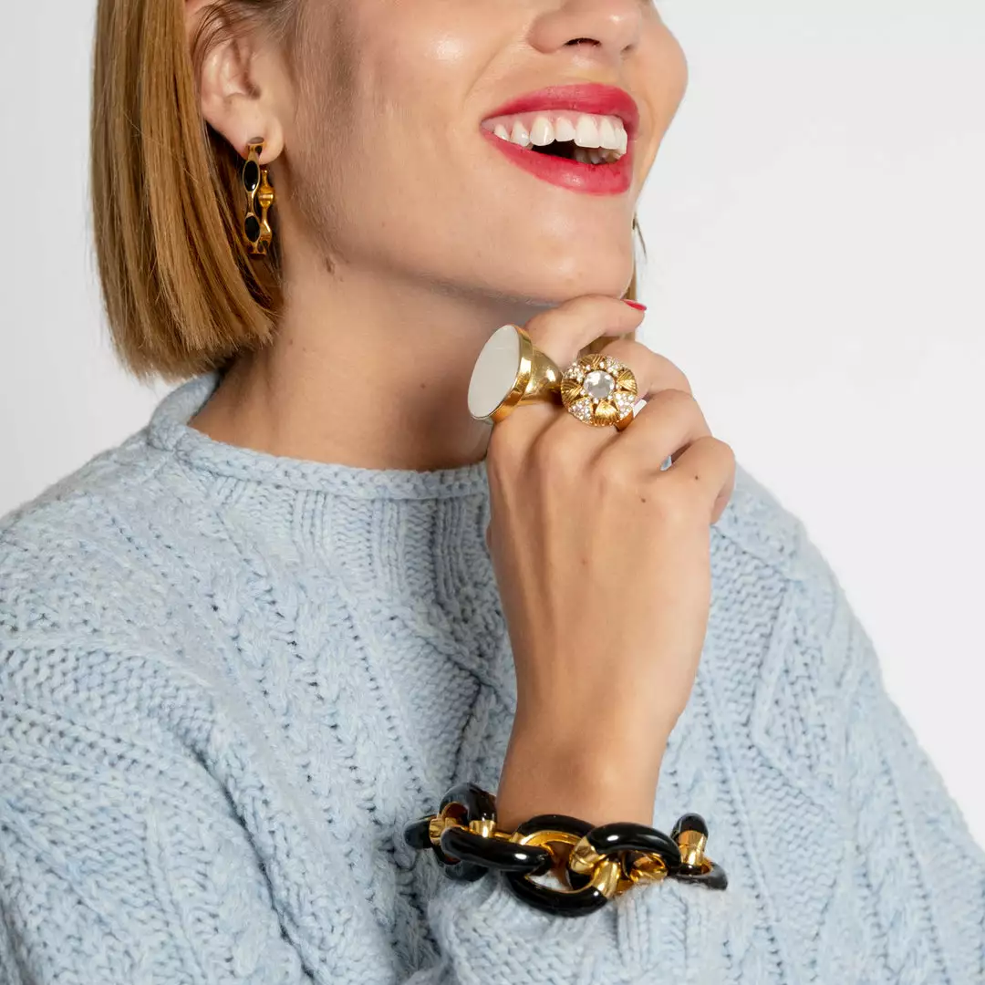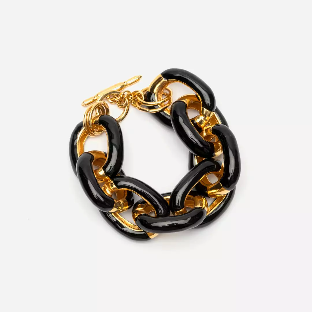 Black and gold adorn our Black Enamel Link Bracelet, the perfect statement making piece.Â