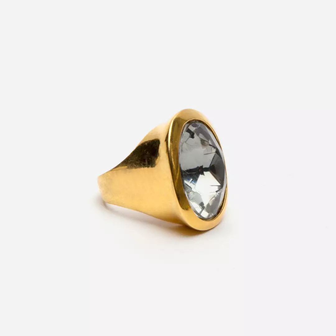 Vintage inspired gold ring with oversized slate stone center. This eye-catching ring is the perfect everyday statement accessory.