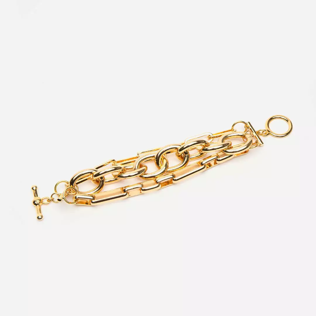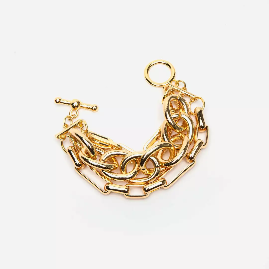 Our Multi Link Bracelet mixes various gold links adding a dramatic touch of shine to any wrist.