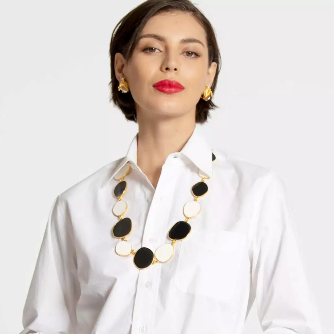 A play on our best selling palette rings, our Palette Necklace features geometric black and white designs, a stylish and artistic piece to add to your collection.