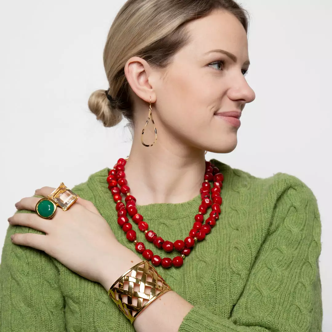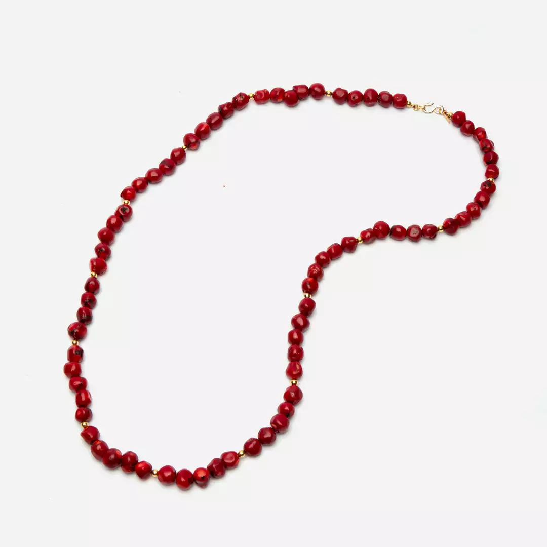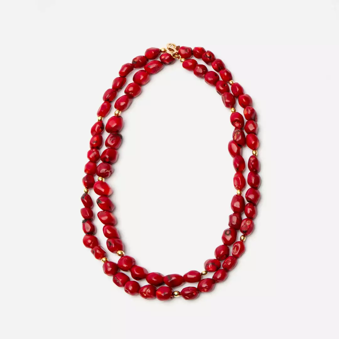 Our Red Pebble Necklace will add a pop of color to any outfit. It can be worn doubled up or full length, making it great for mixing and matching with other pieces.
