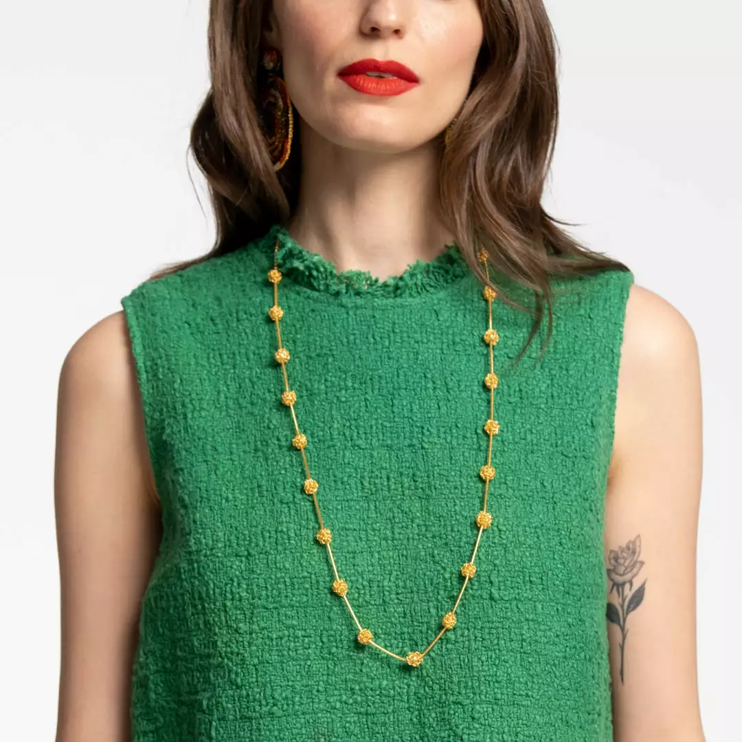Sleek and simple our Crochet Dome Necklace pairs perfectly with any of our tops and can be layered with other necklaces for a bold look.